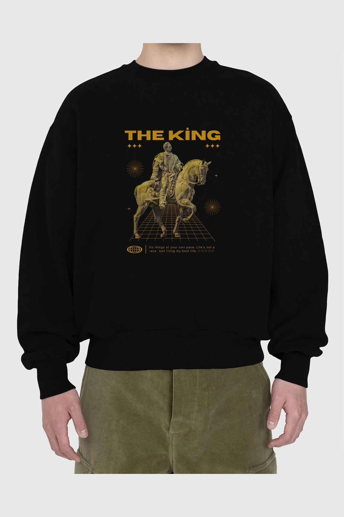 The King Yazılı Ön Baskılı Oversize Sweatshirt Erkek Kadın Unisex
