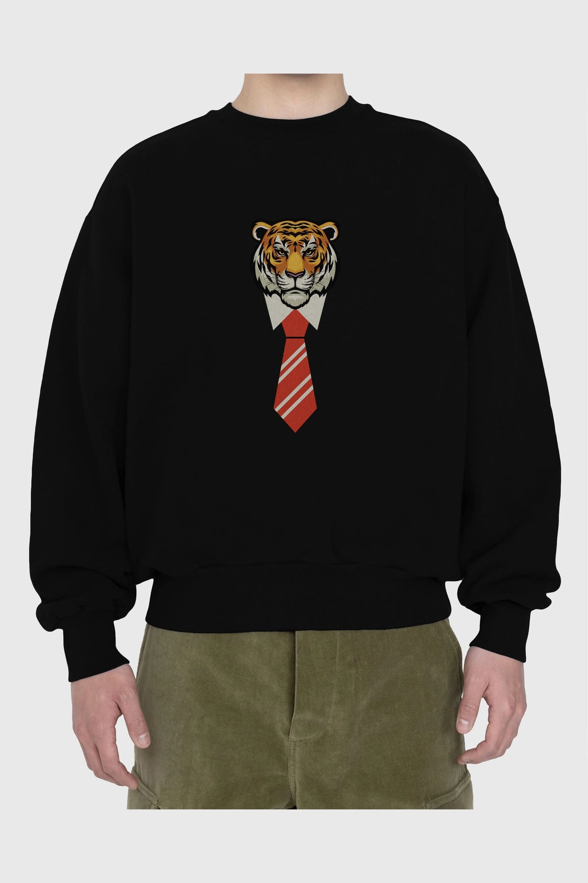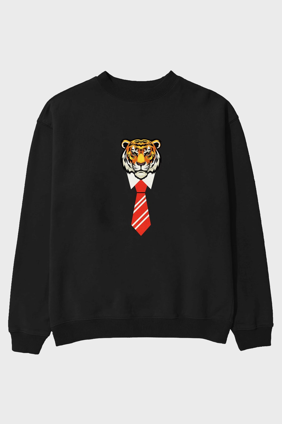 Tiger With Tie Ön Baskılı Oversize Sweatshirt Erkek Kadın Unisex