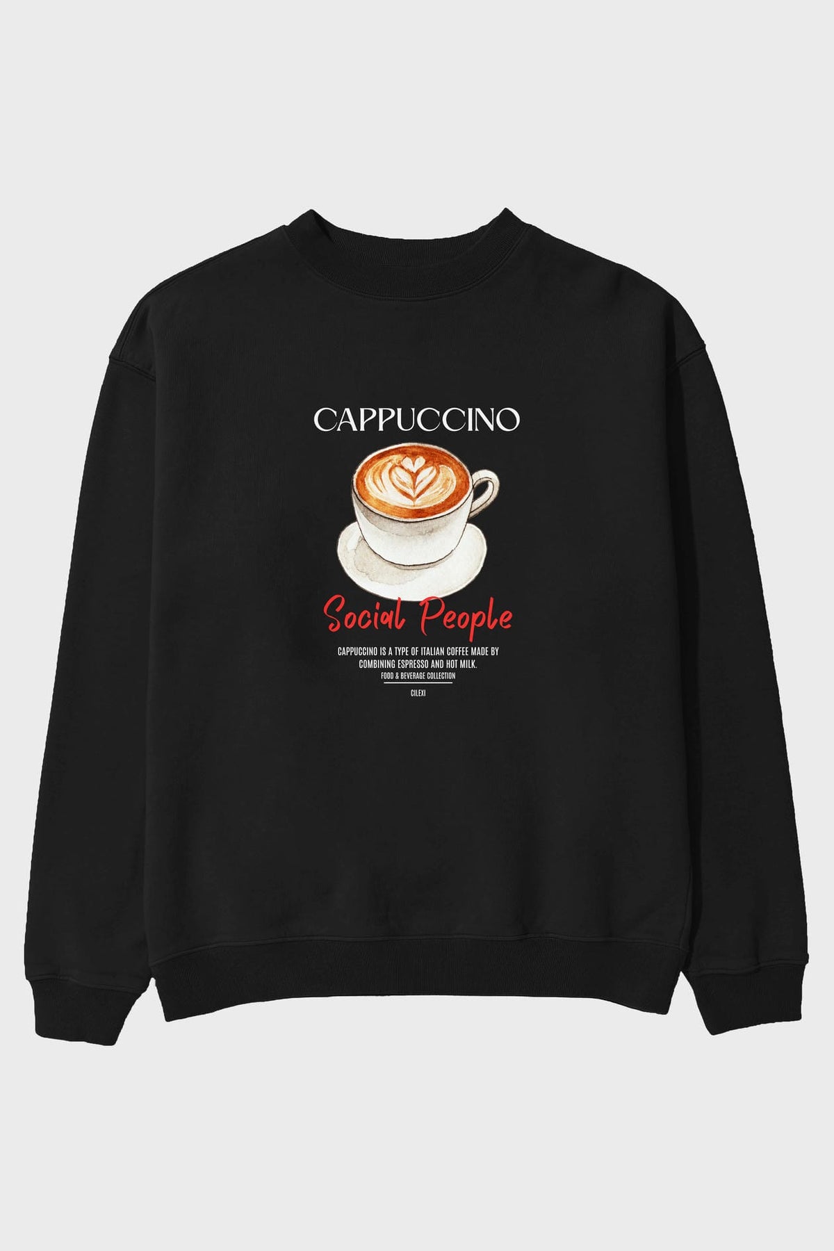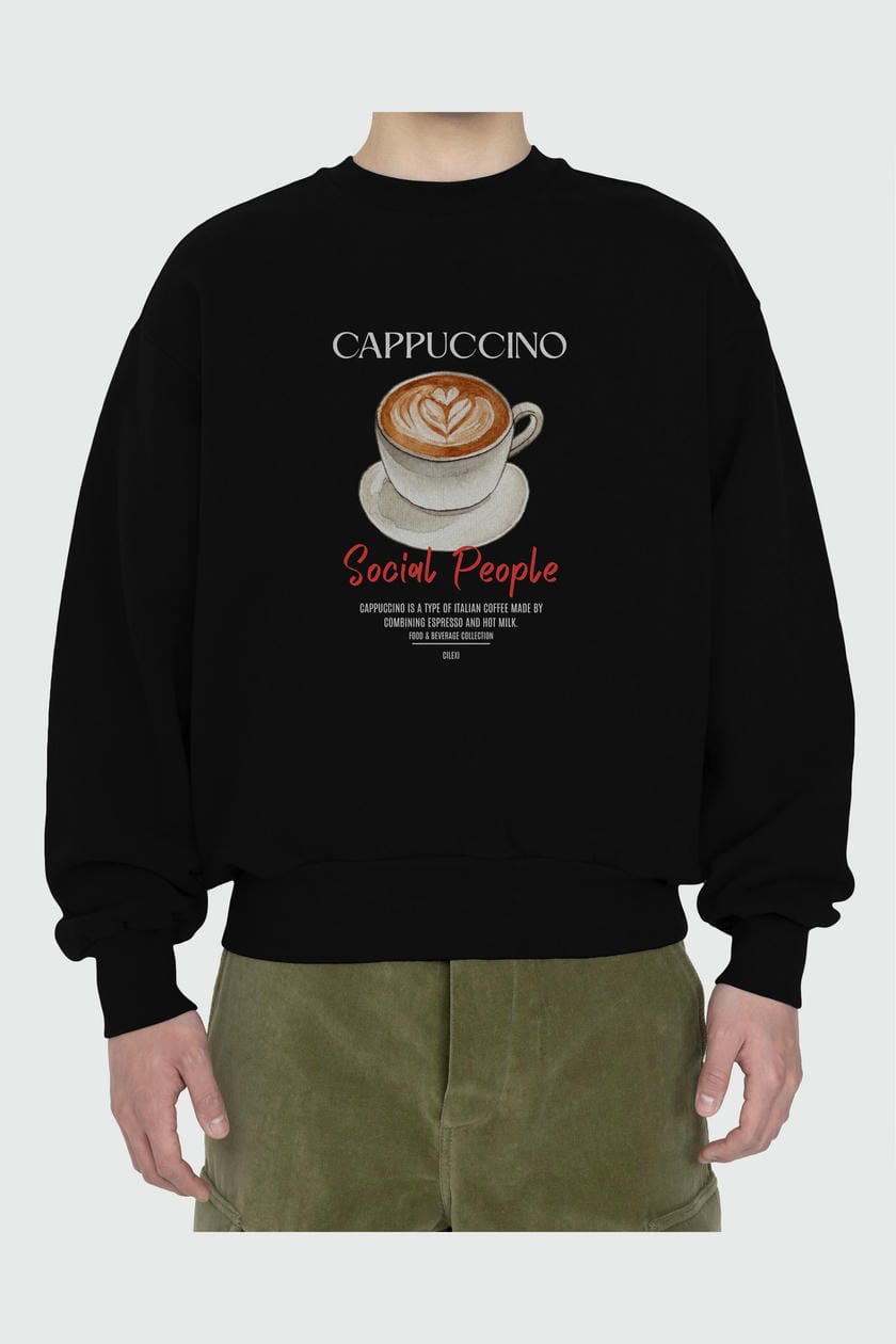 Cappuccino ön Baskılı Oversize Sweatshirt Erkek Kadın Unisex