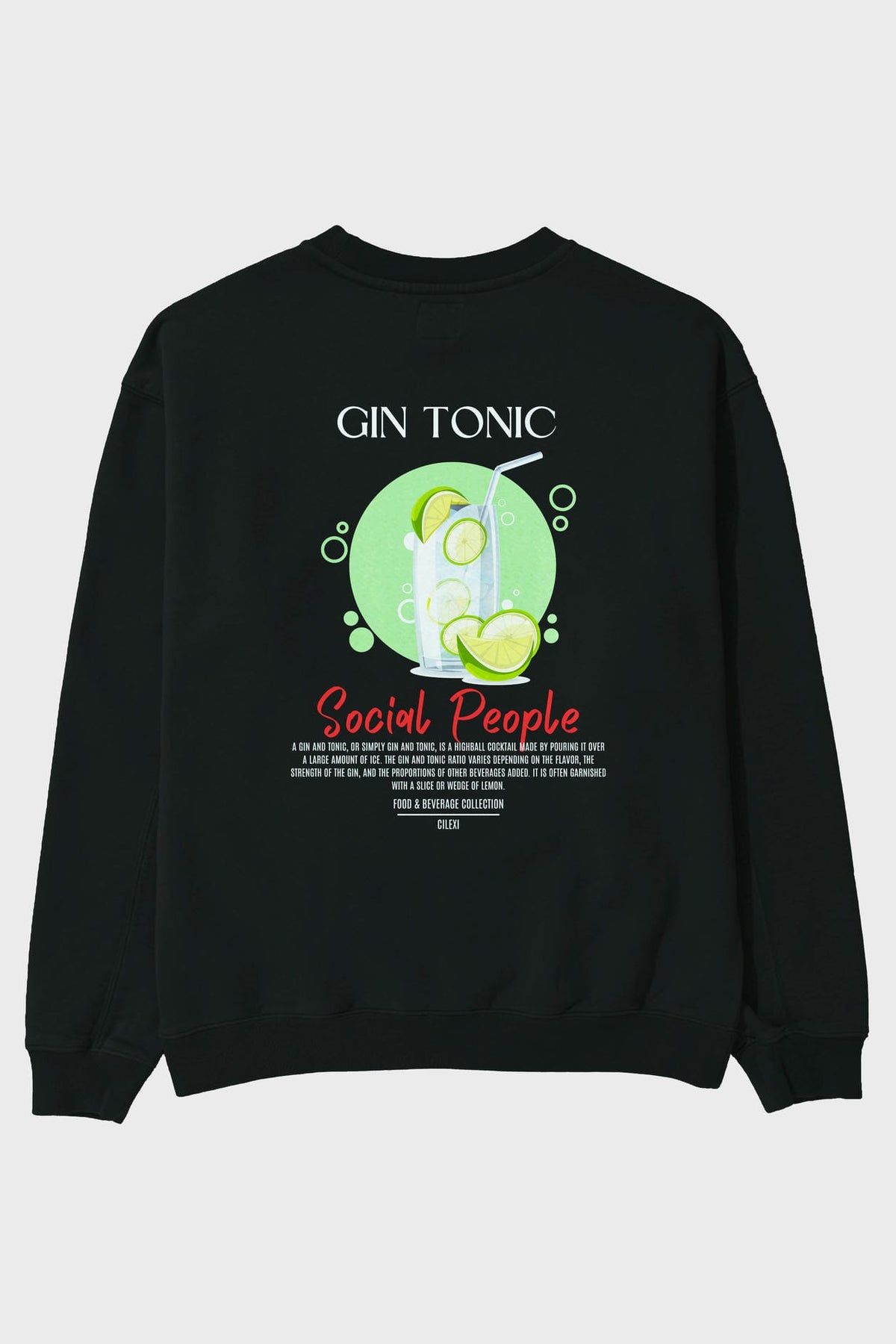 Gin Tonic Arka Baskılı Oversize Sweatshirt Erkek Kadın Unisex