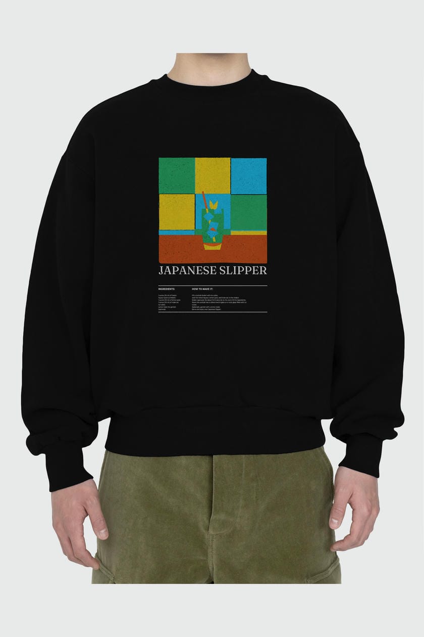 Japanese Slipper ön Baskılı Oversize Sweatshirt Erkek Kadın Unisex