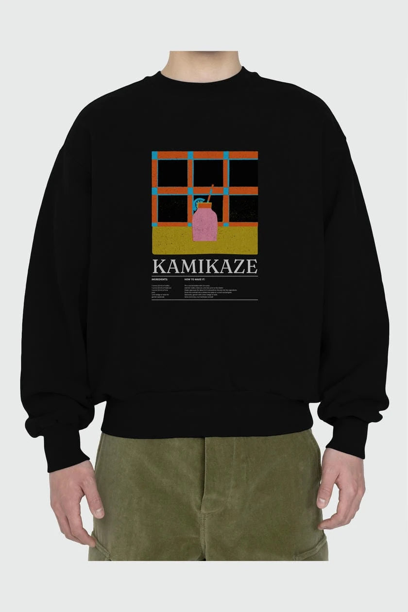 Kamikaze ön Baskılı Oversize Sweatshirt Erkek Kadın Unisex