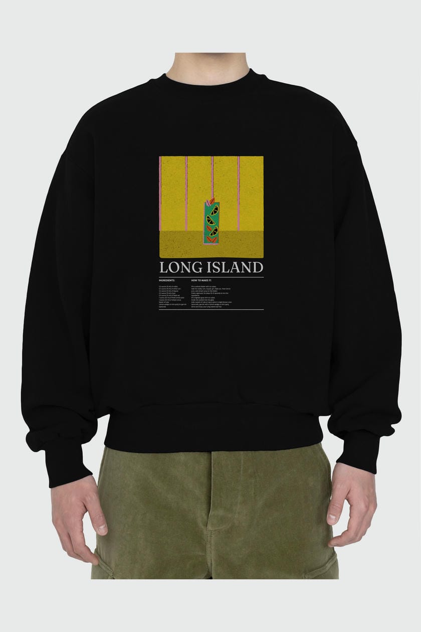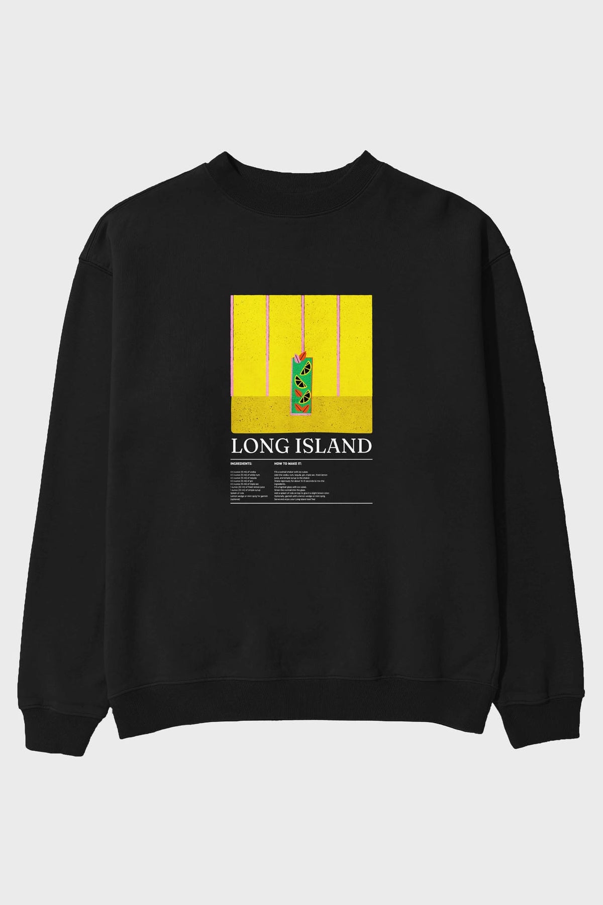 Long Island ön Baskılı Oversize Sweatshirt Erkek Kadın Unisex