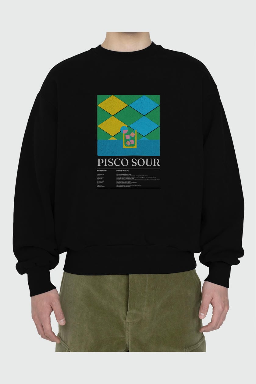Pisco Sour ön Baskılı Oversize Sweatshirt Erkek Kadın Unisex