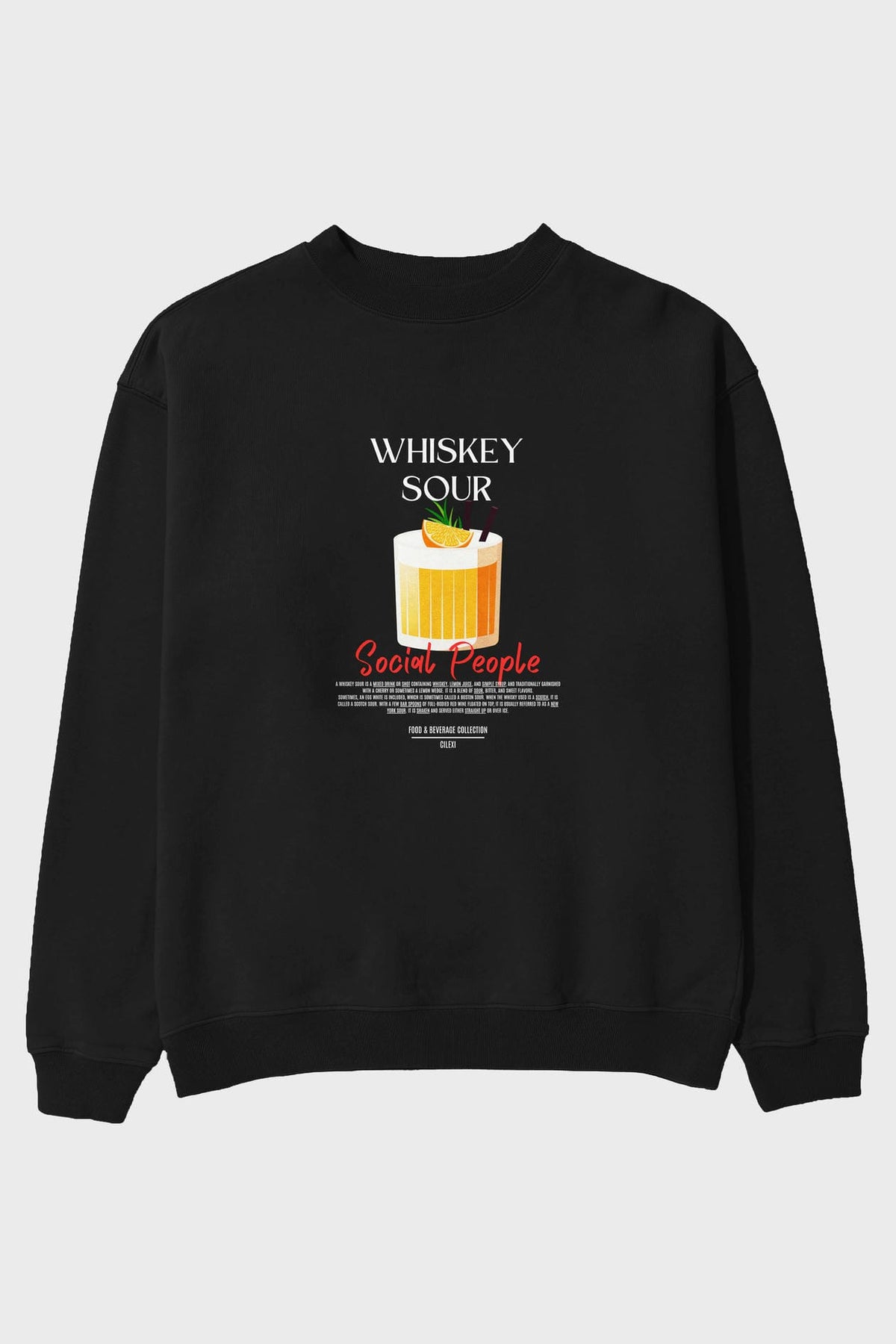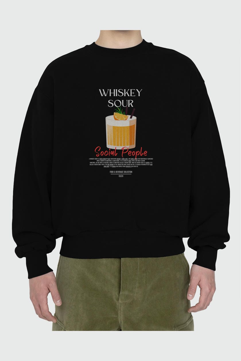 Whiskey Sour ön Baskılı Oversize Sweatshirt Erkek Kadın Unisex
