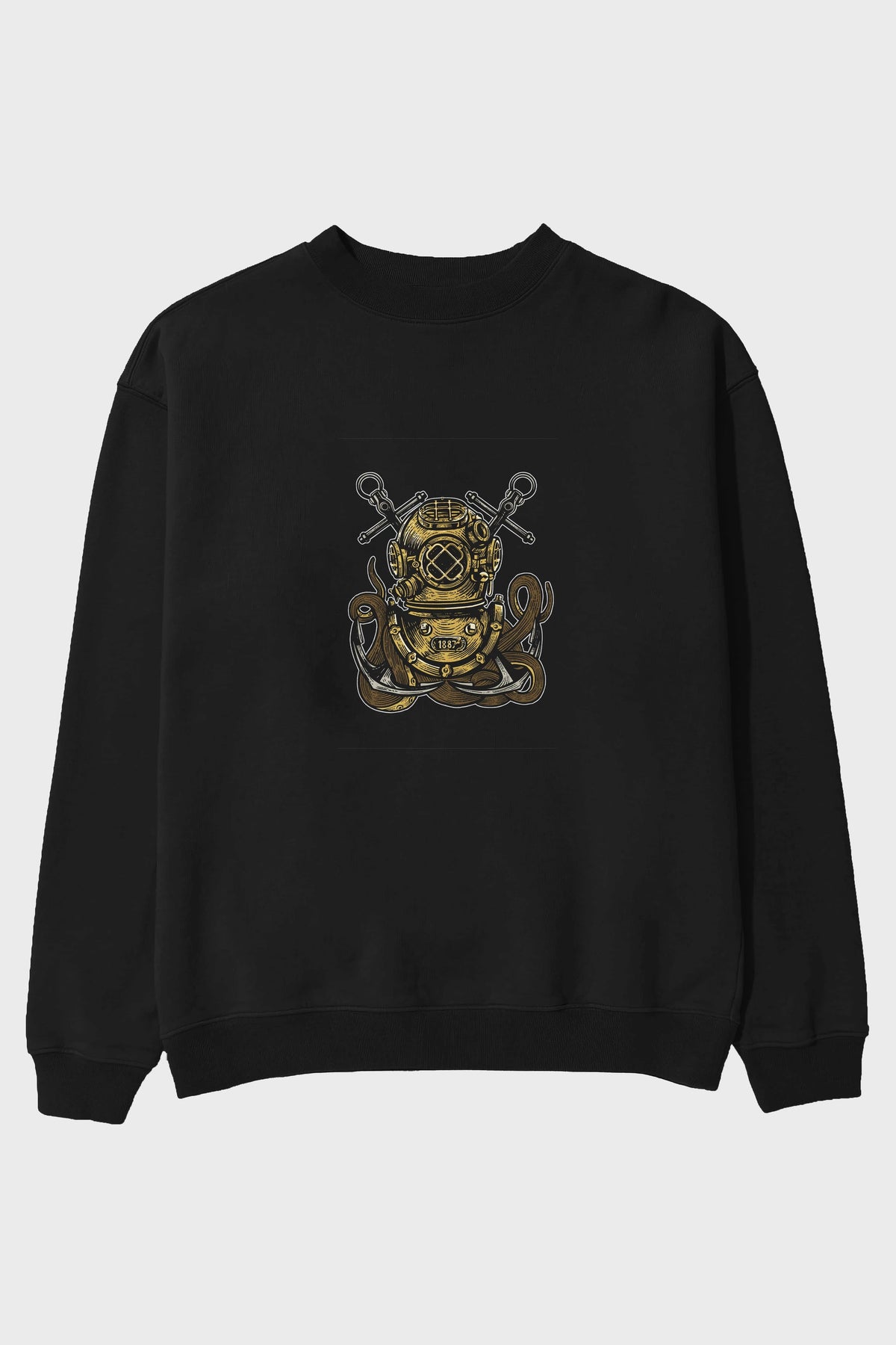 Diver Octopus Ön Baskılı Oversize Sweatshirt Erkek Kadın Unisex