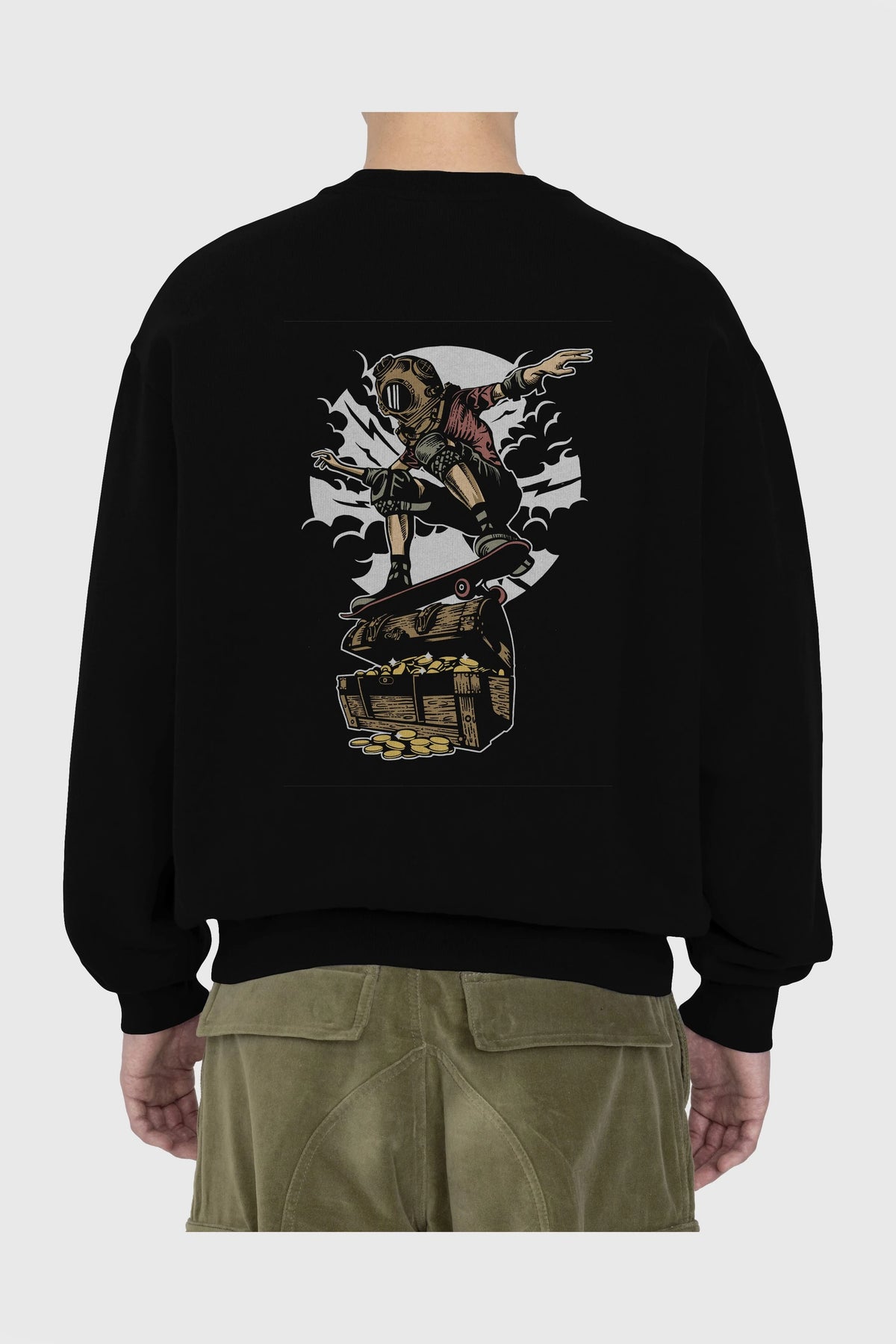 Diver Skater Treasure Arka Baskılı Oversize Sweatshirt Erkek Kadın Unisex