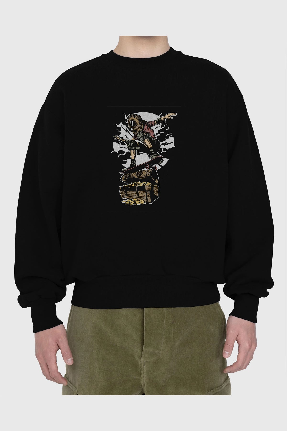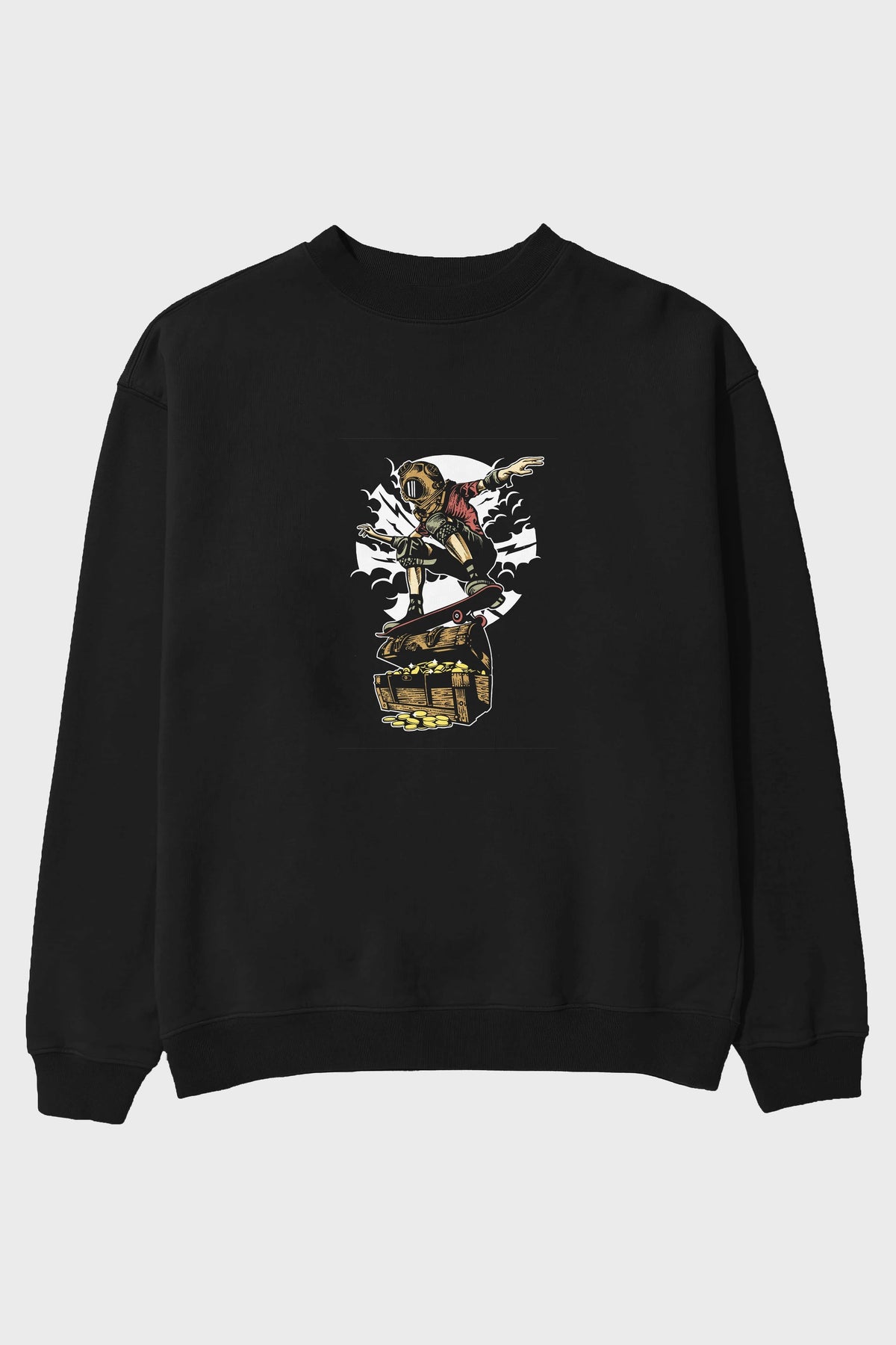 Diver Skater Treasure Ön Baskılı Oversize Sweatshirt Erkek Kadın Unisex