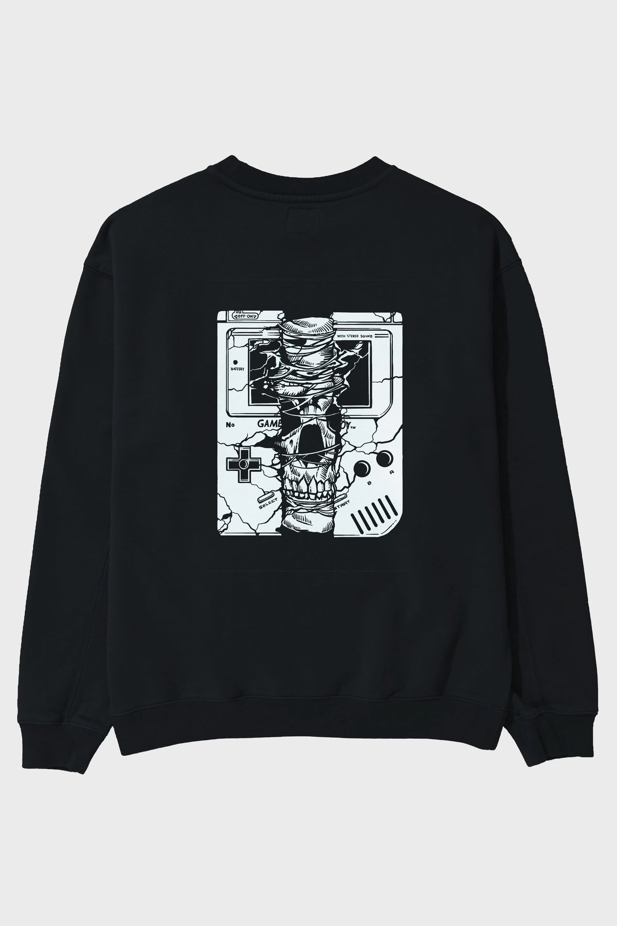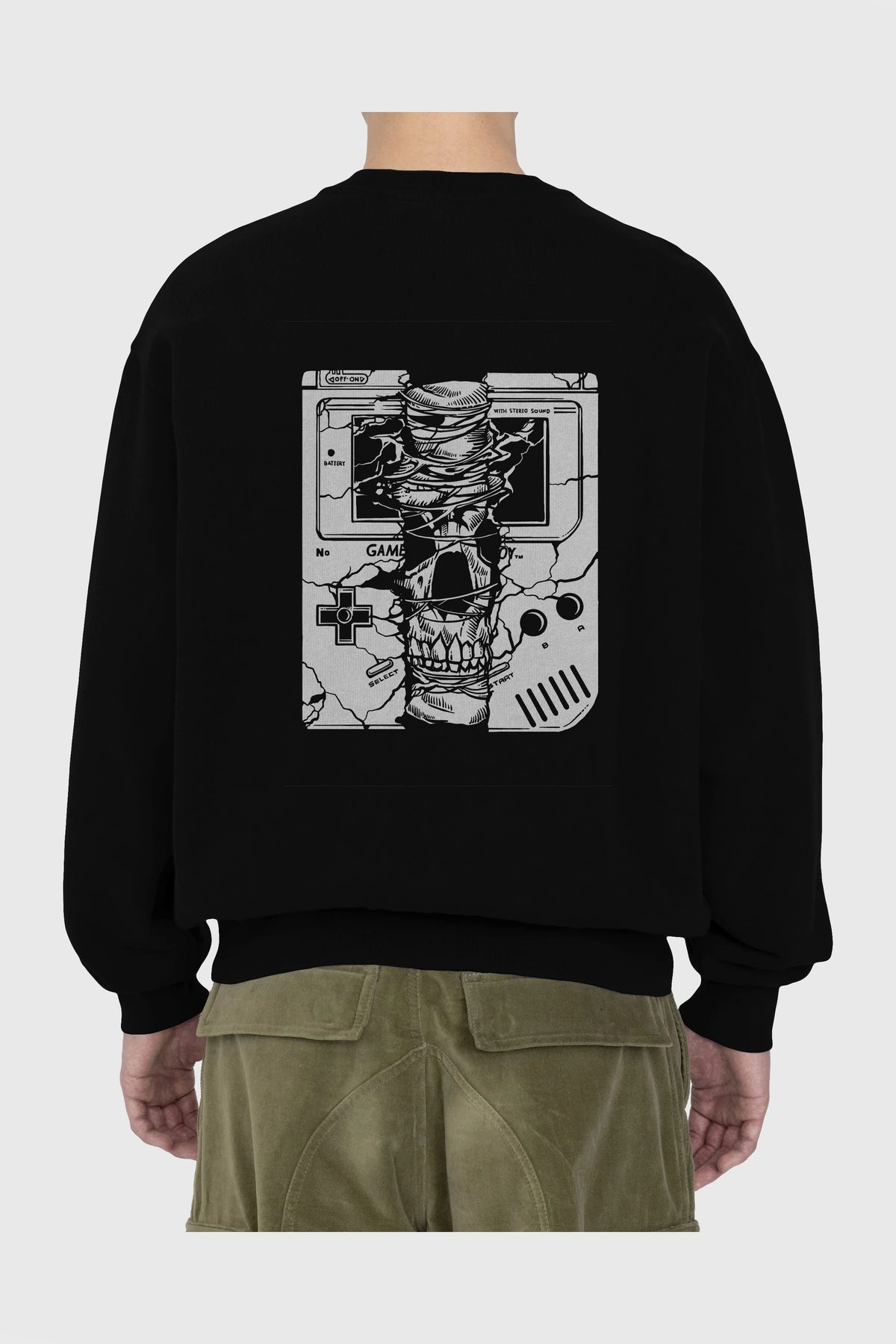Gameboy Skull Arka Baskılı Oversize Sweatshirt Erkek Kadın Unisex