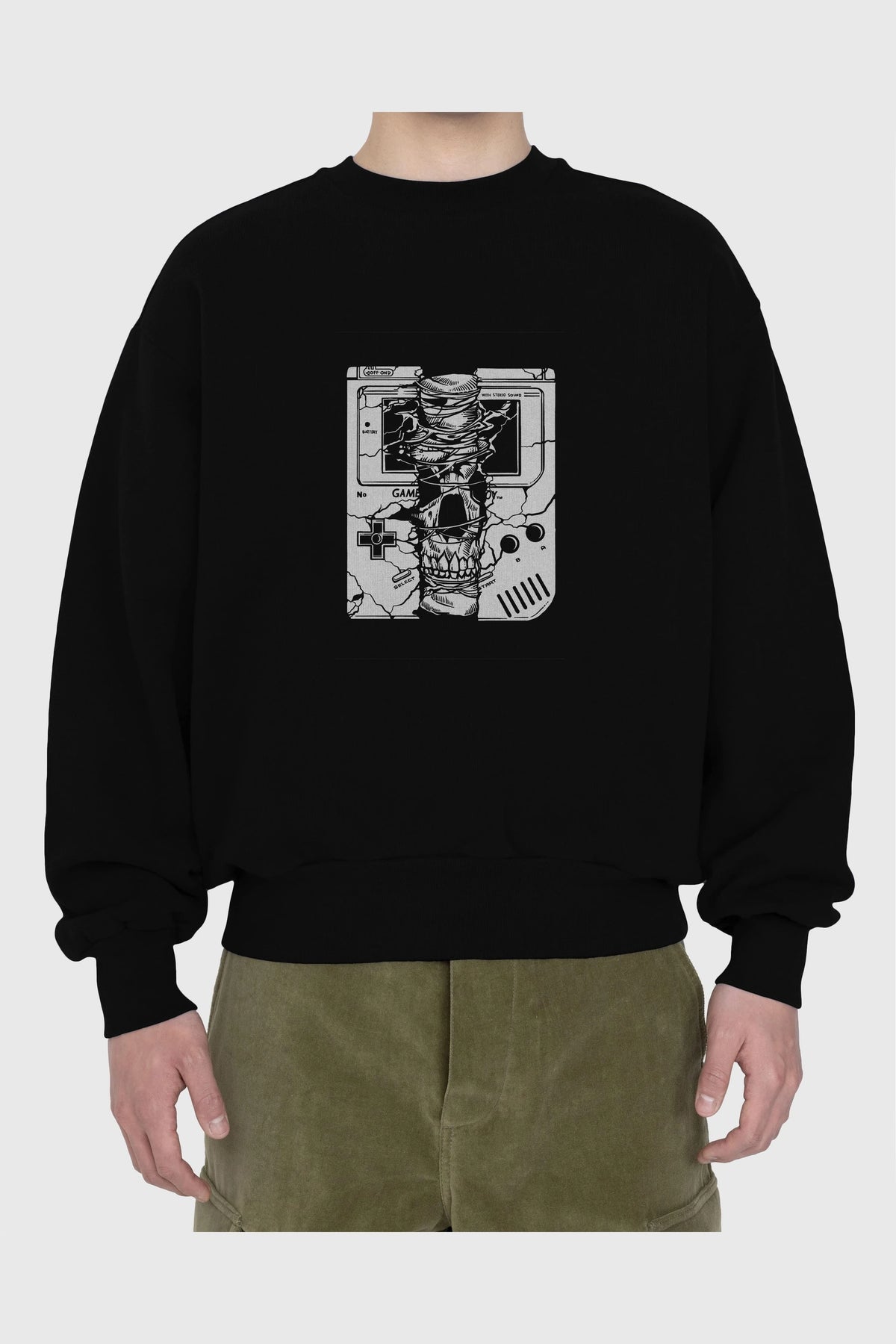 Gameboy Skull Ön Baskılı Oversize Sweatshirt Erkek Kadın Unisex