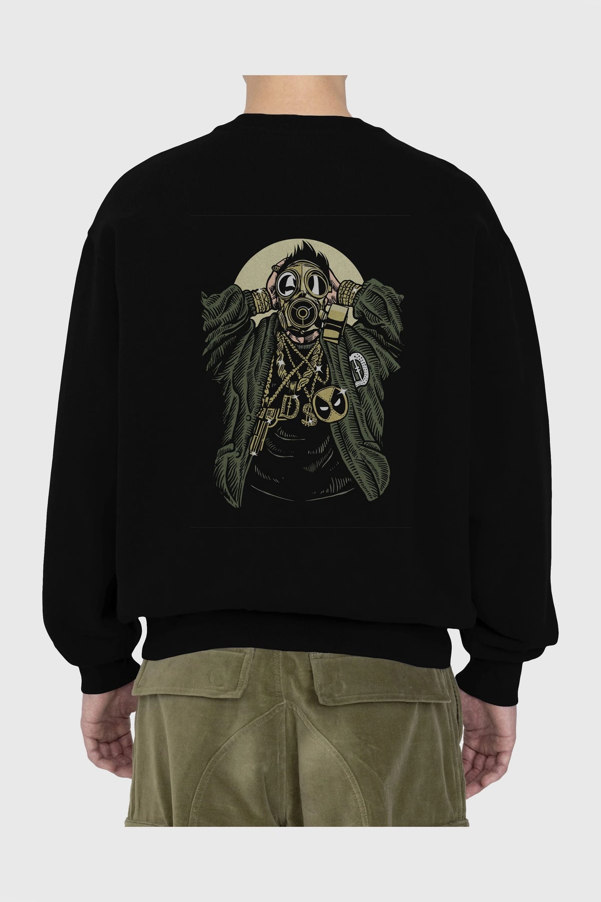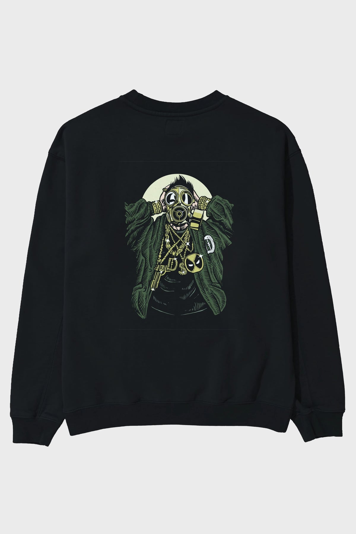 Gasmask Gangsta Arka Baskılı Oversize Sweatshirt Erkek Kadın Unisex