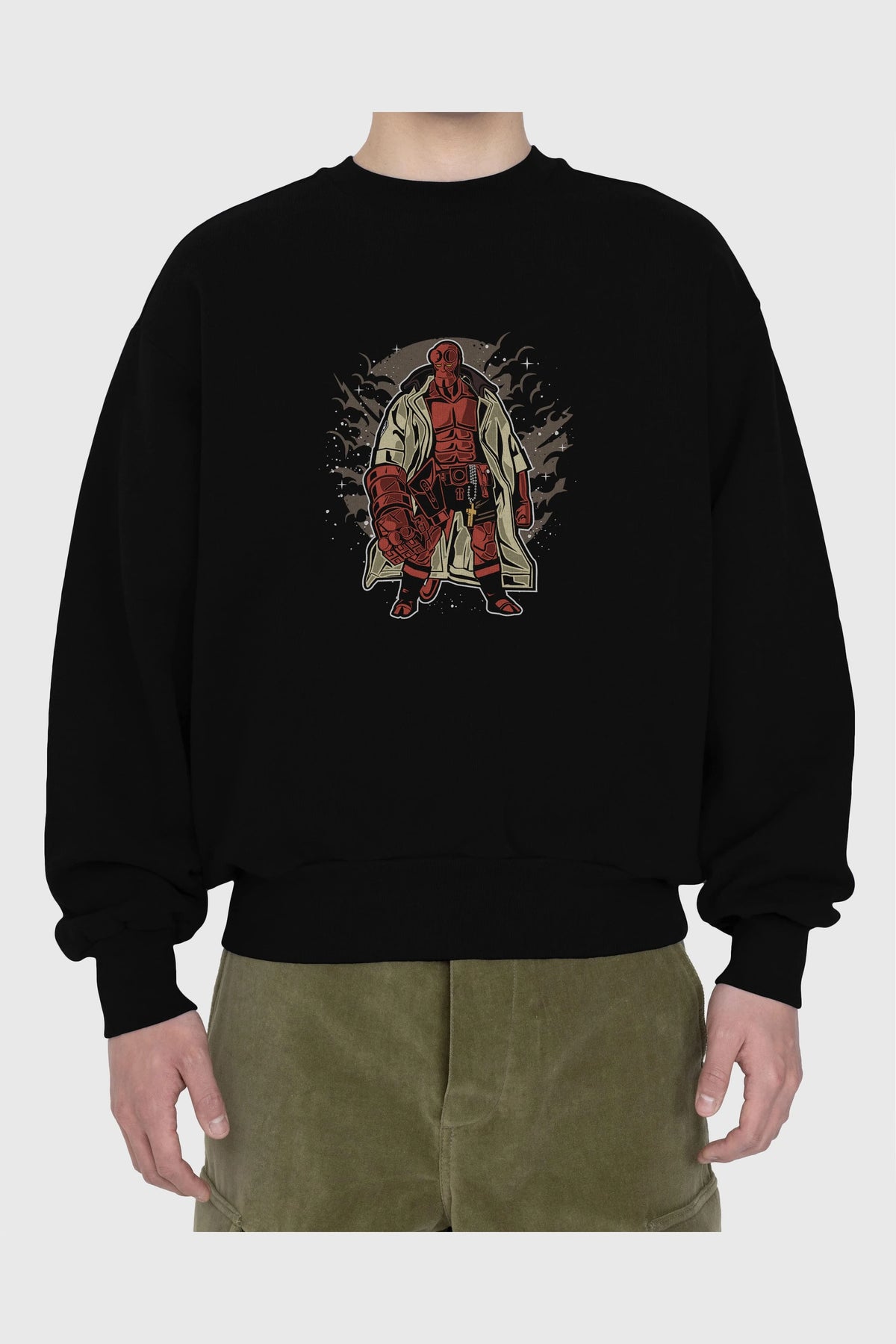 Hellboy Ön Baskılı Oversize Sweatshirt Erkek Kadın Unisex