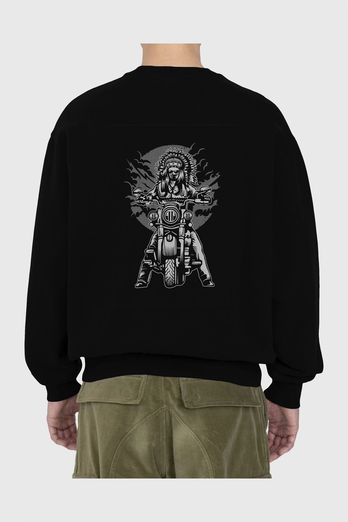 Indian Chief Motorcycle Arka Baskılı Oversize Sweatshirt Erkek Kadın Unisex