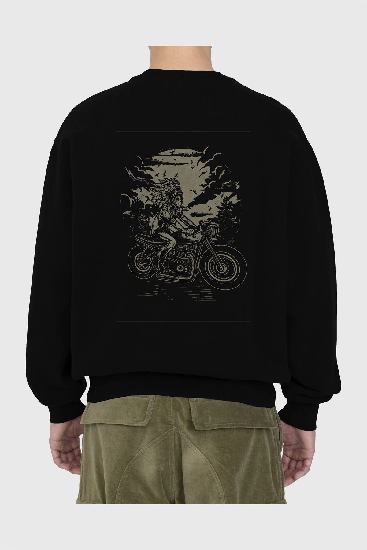 Indian Chief Rider Arka Baskılı Oversize Sweatshirt Erkek Kadın Unisex