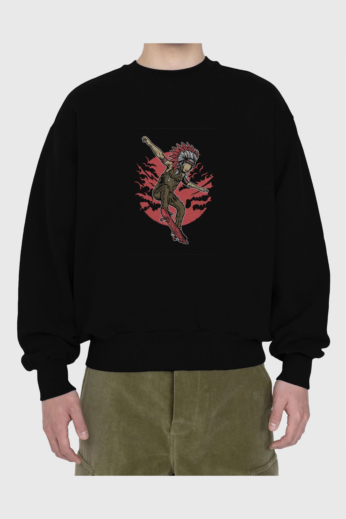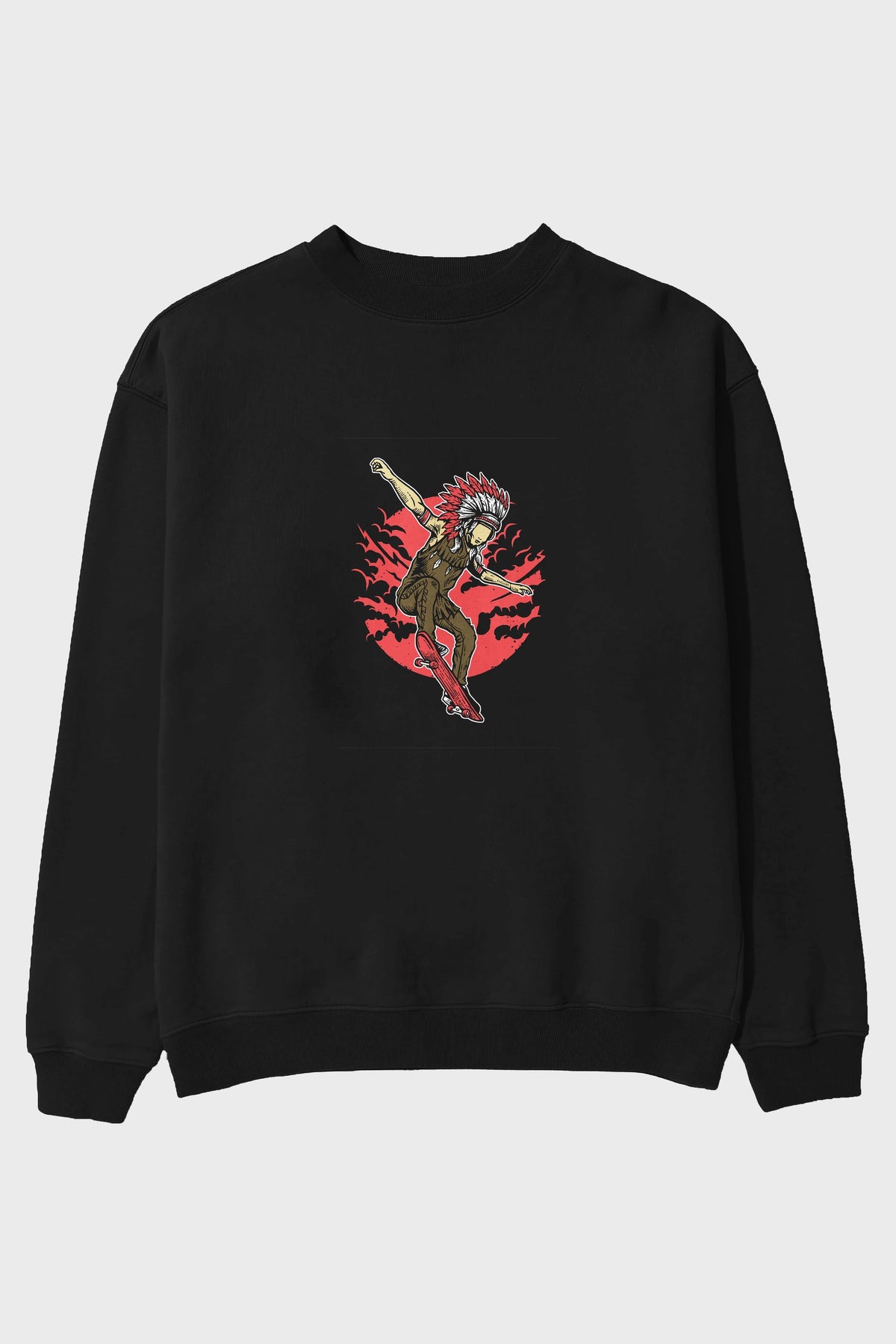 Indian Chief Skateboard Ön Baskılı Oversize Sweatshirt Erkek Kadın Unisex