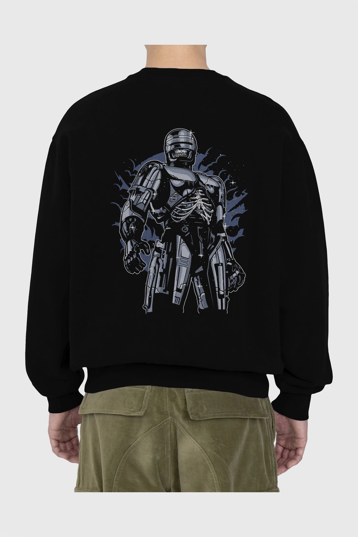 Roboskull Arka Baskılı Oversize Sweatshirt Erkek Kadın Unisex