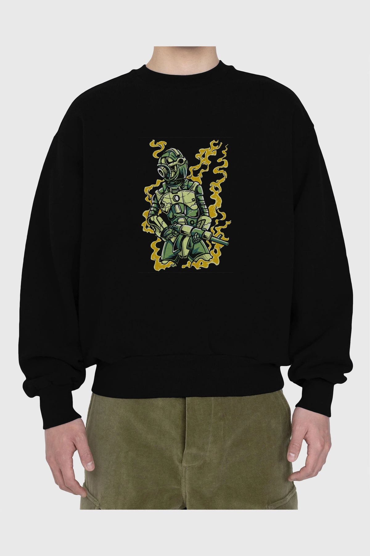 Robot Soldier Ön Baskılı Oversize Sweatshirt Erkek Kadın Unisex