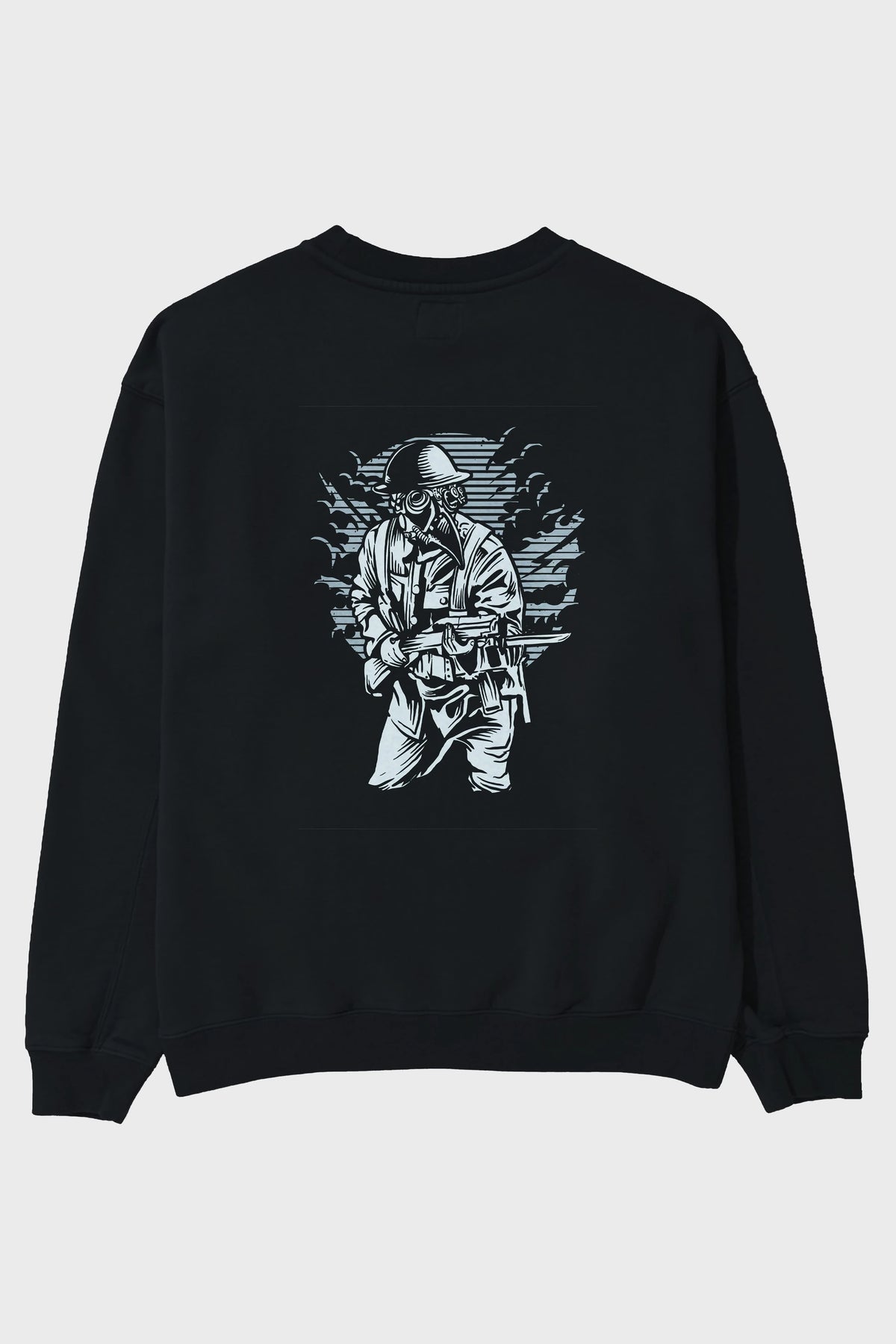 Steampunk Style Soldier Arka Baskılı Oversize Sweatshirt Erkek Kadın Unisex