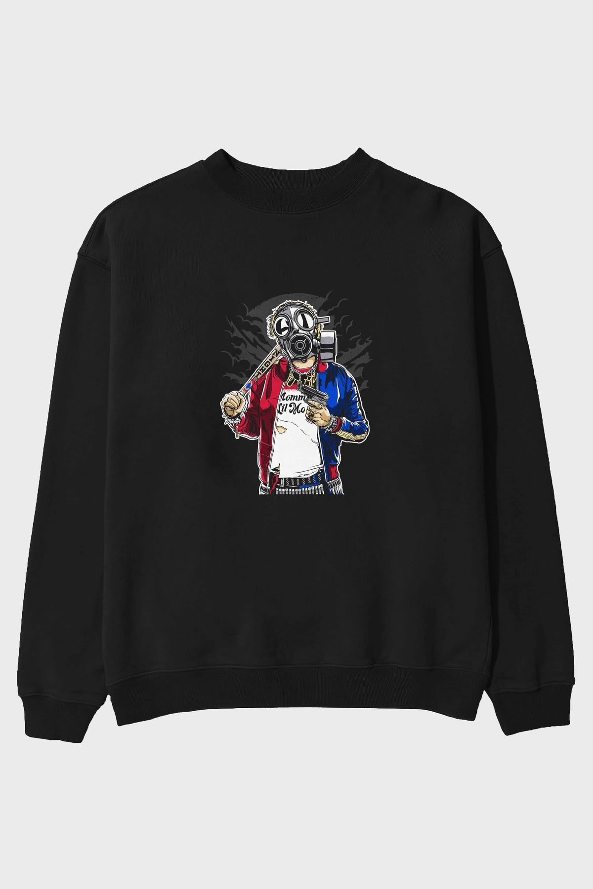 Suicide Gasmask Ön Baskılı Oversize Sweatshirt Erkek Kadın Unisex