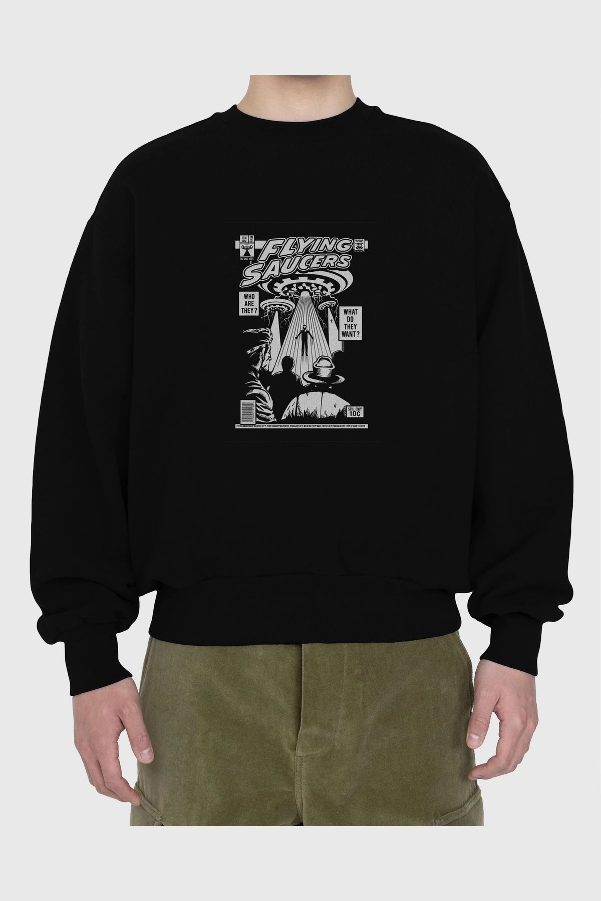 UFO Ön Baskılı Oversize Sweatshirt Erkek Kadın Unisex