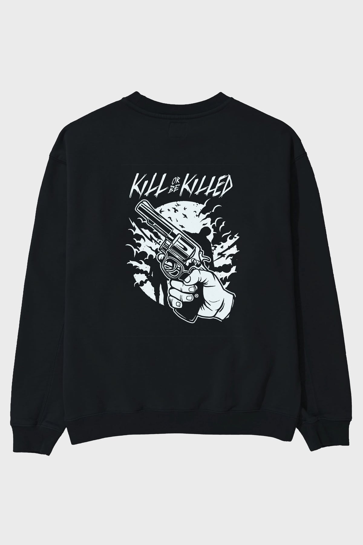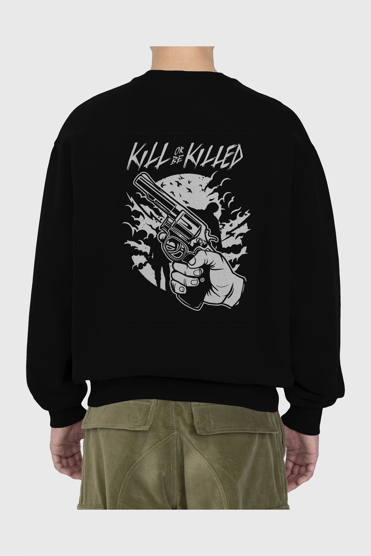 Zombie Shooter Arka Baskılı Oversize Sweatshirt Erkek Kadın Unisex