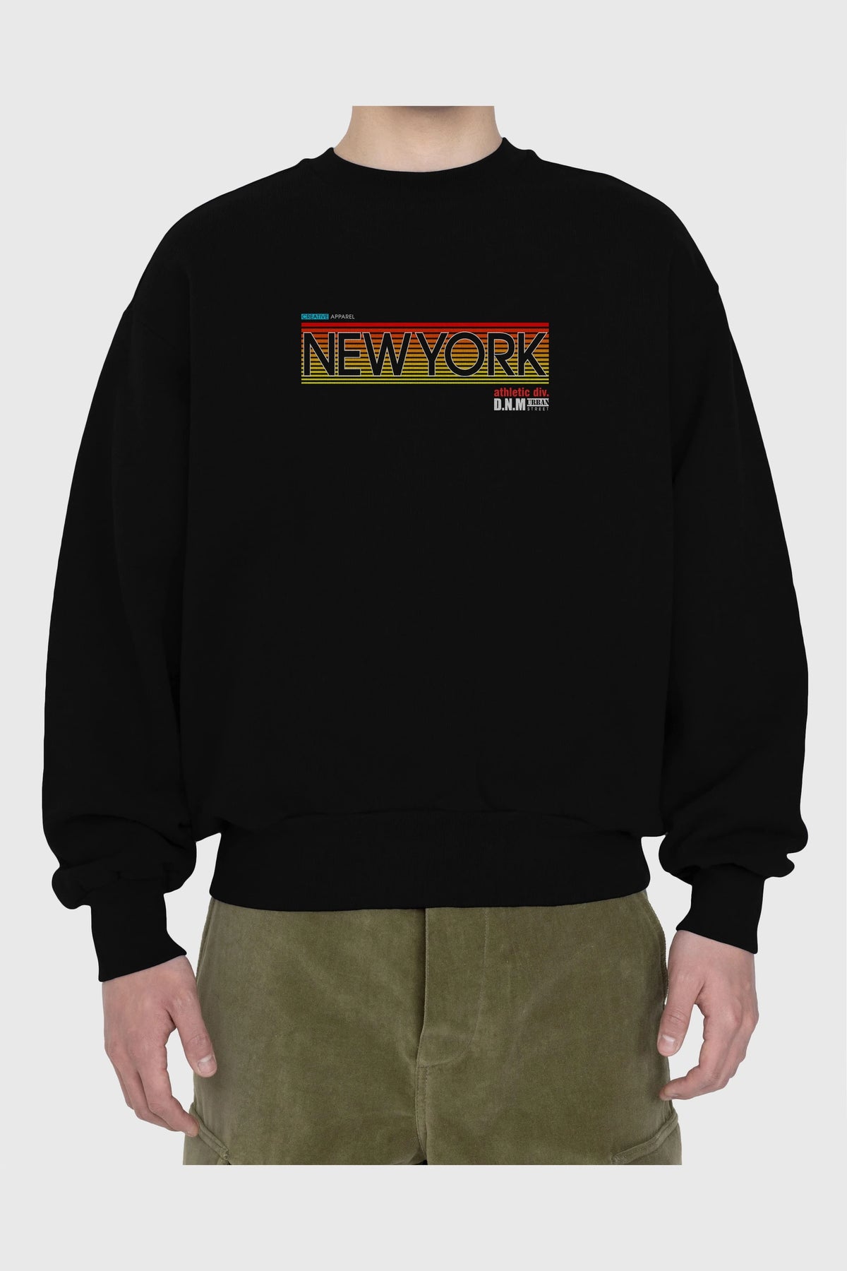 New York Denim Ön Baskılı Oversize Sweatshirt Erkek Kadın Unisex