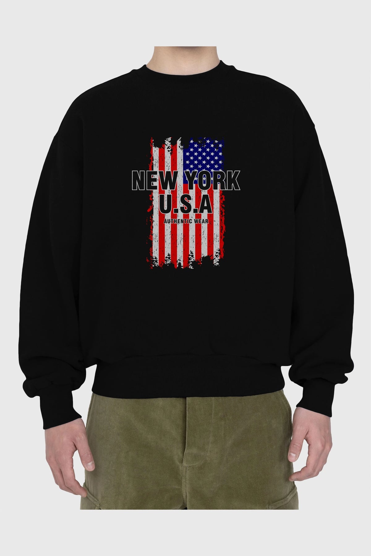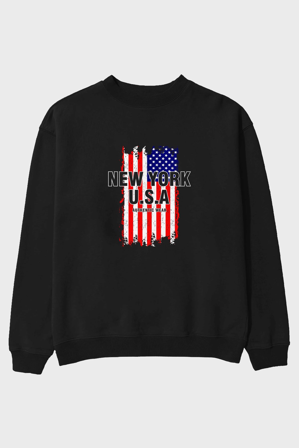 New York Usa Ön Baskılı Oversize Sweatshirt Erkek Kadın Unisex
