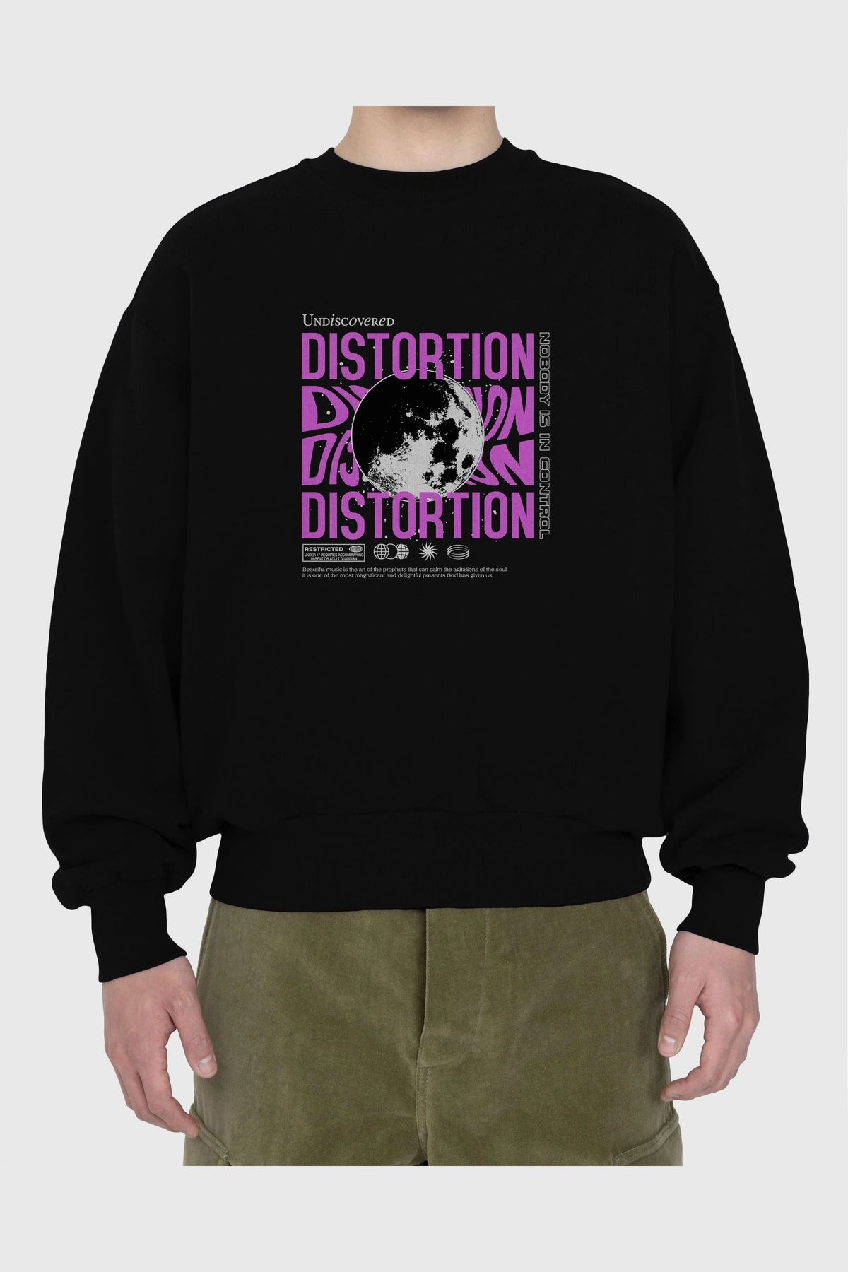 Distortion Ön Baskılı Oversize Sweatshirt Erkek Kadın Unisex