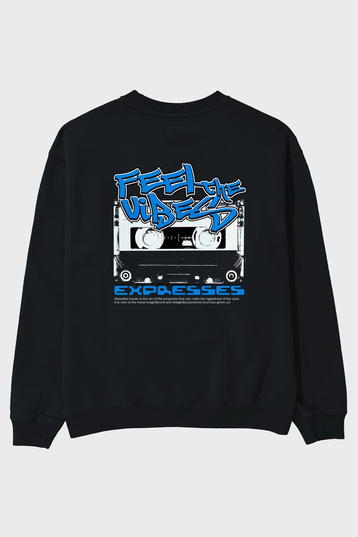 Feel The Vibes Arka Baskılı Oversize Sweatshirt Erkek Kadın Unisex