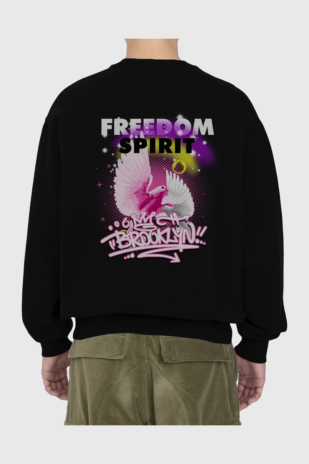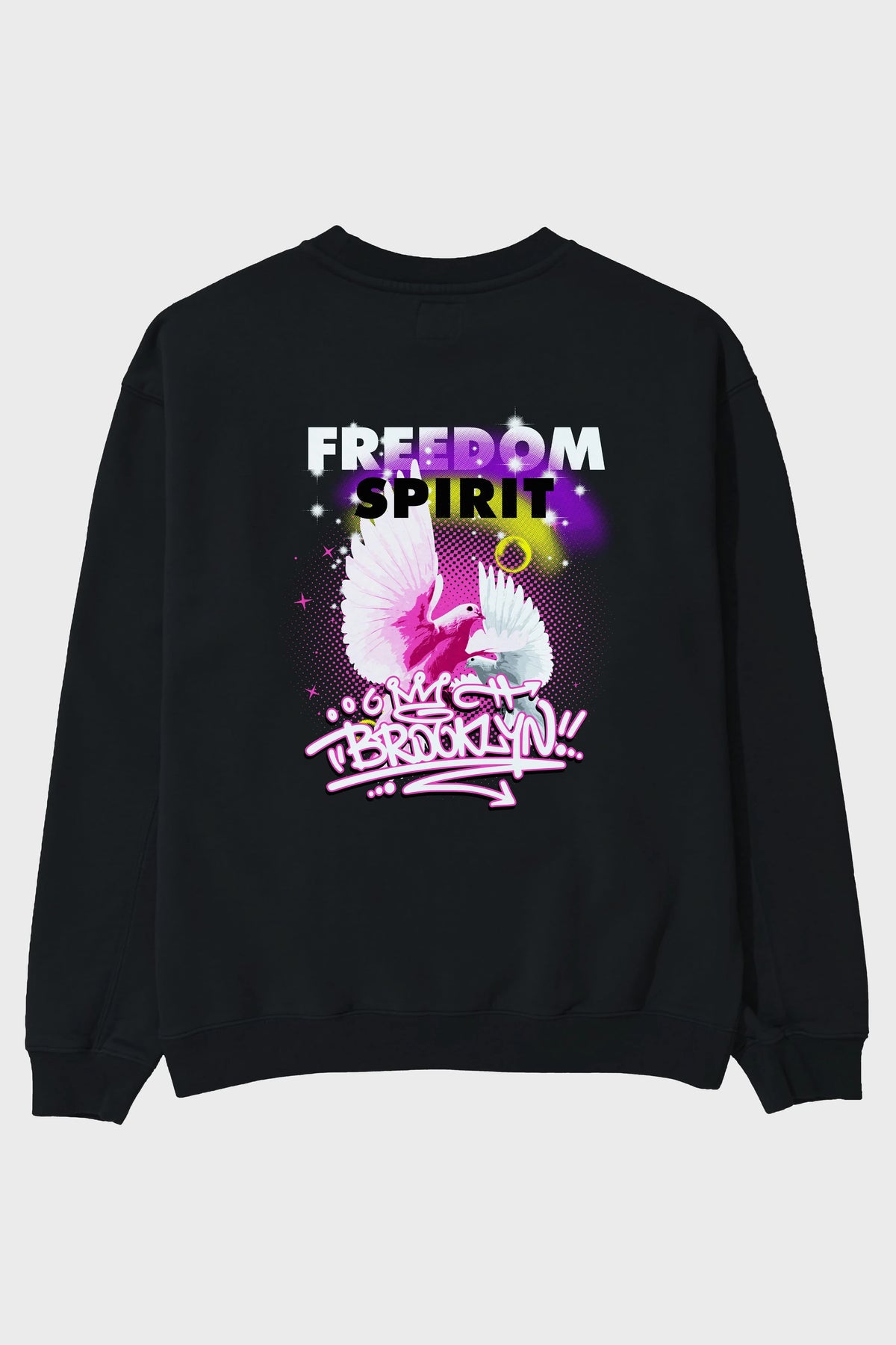 Freedom Spirit Brooklyn Arka Baskılı Oversize Sweatshirt Erkek Kadın Unisex