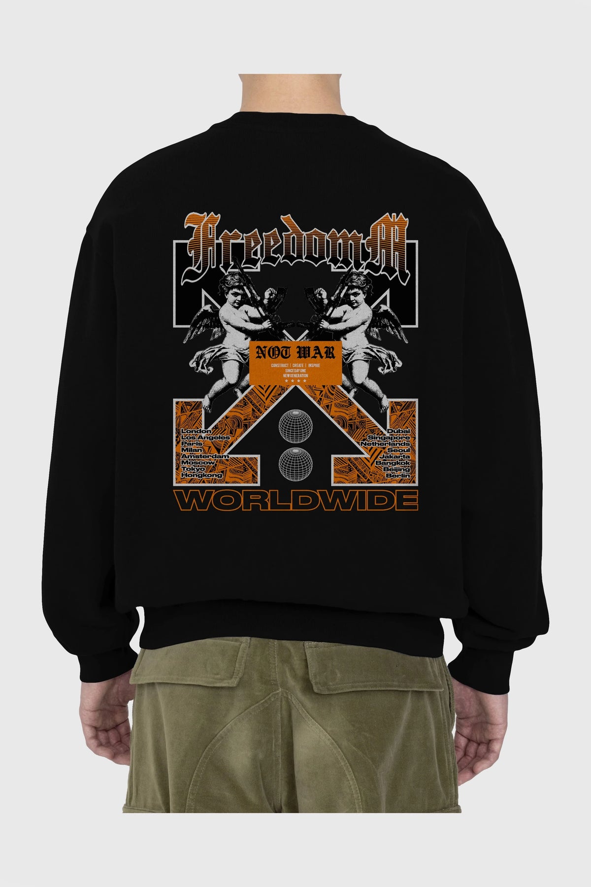 Freedom Worldwide Arka Baskılı Oversize Sweatshirt Erkek Kadın Unisex