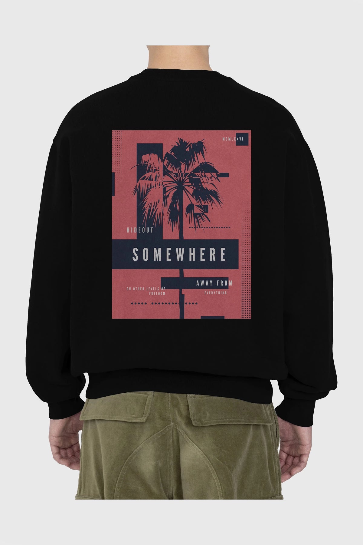 Hideout Somewhere Arka Baskılı Oversize Sweatshirt Erkek Kadın Unisex