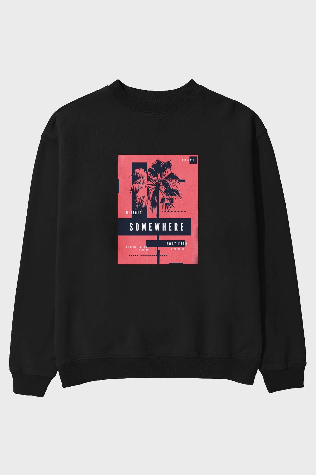 Hideout Somewhere Ön Baskılı Oversize Sweatshirt Erkek Kadın Unisex