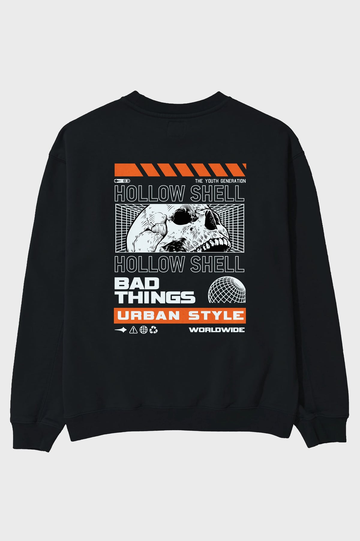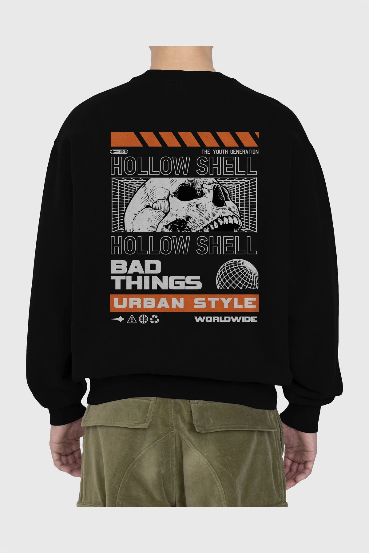 Hollow Shell Arka Baskılı Oversize Sweatshirt Erkek Kadın Unisex