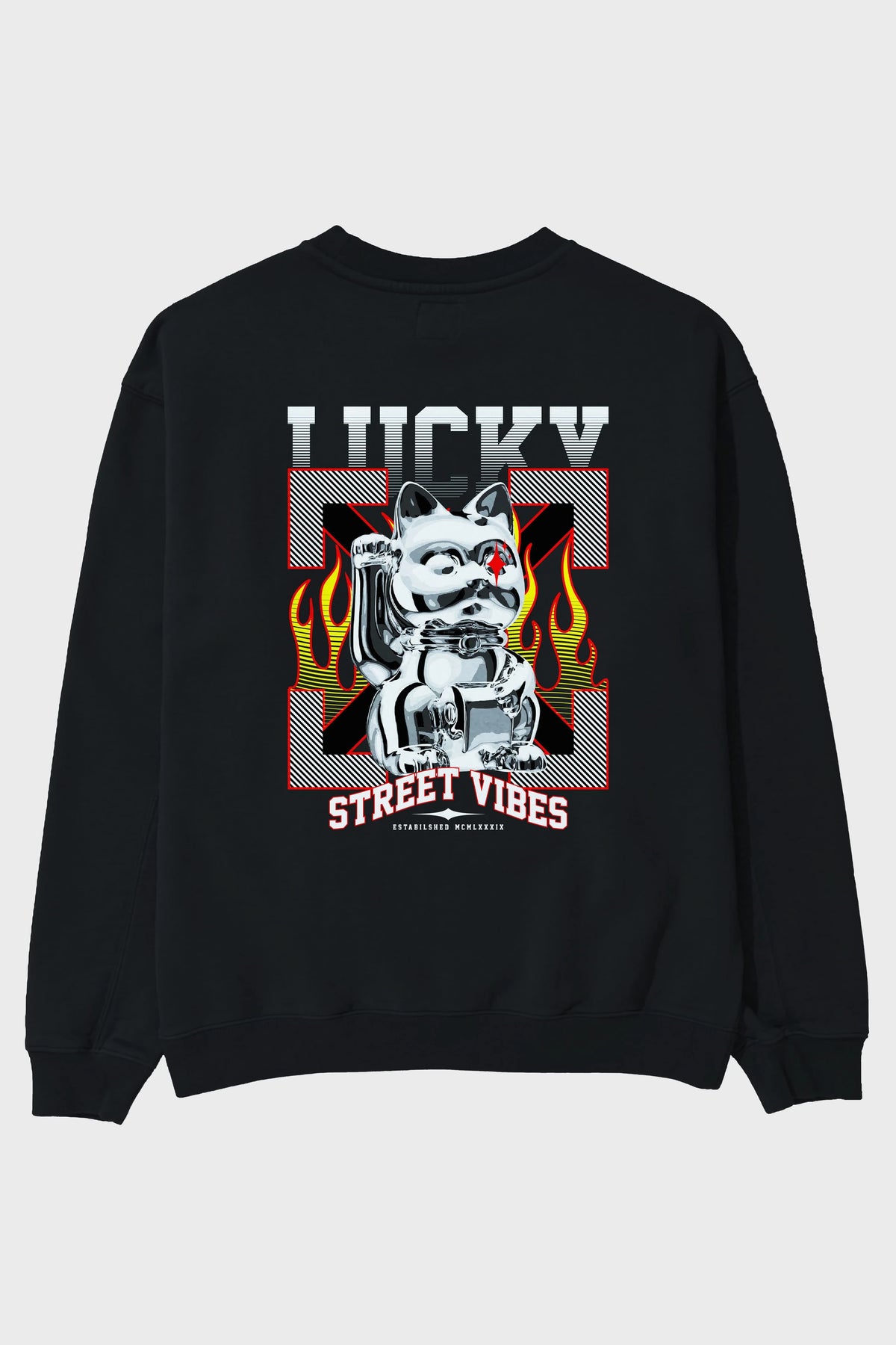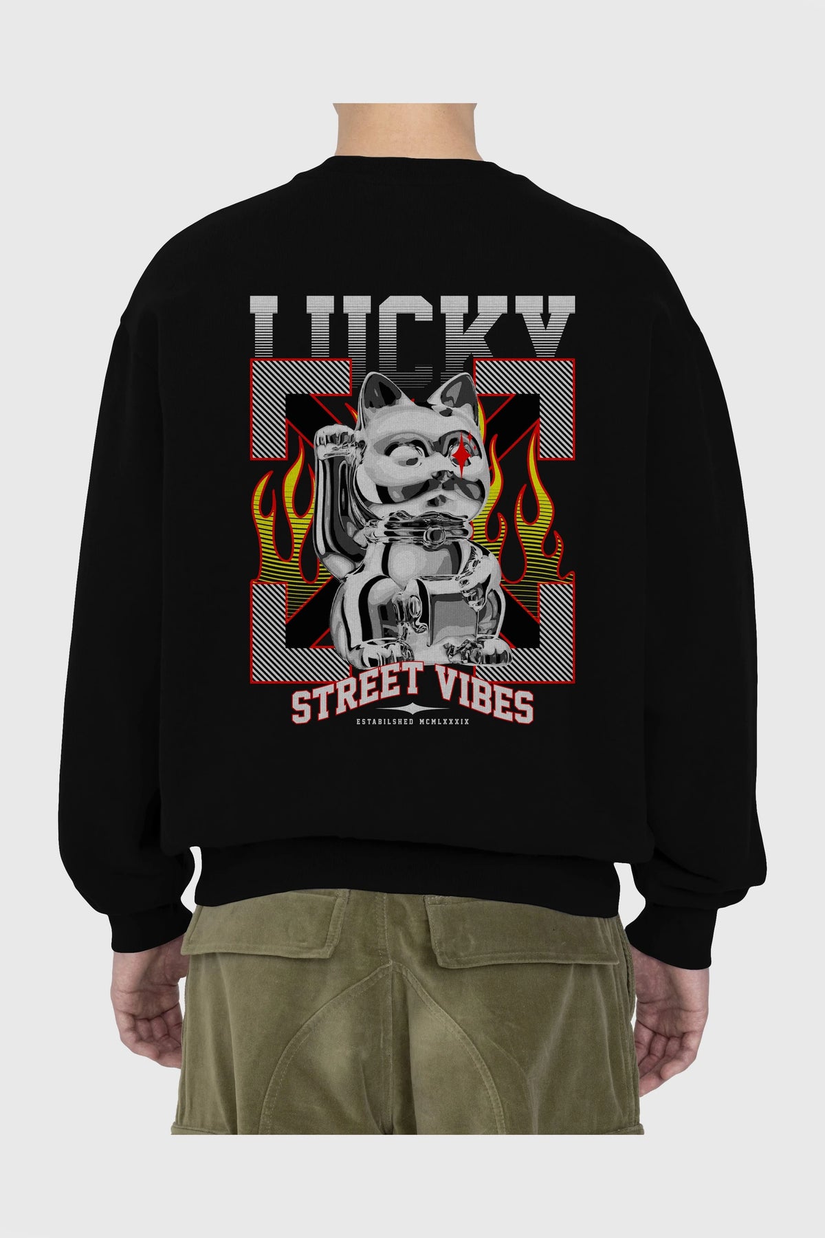 Lucky Street Vibes Arka Baskılı Oversize Sweatshirt Erkek Kadın Unisex