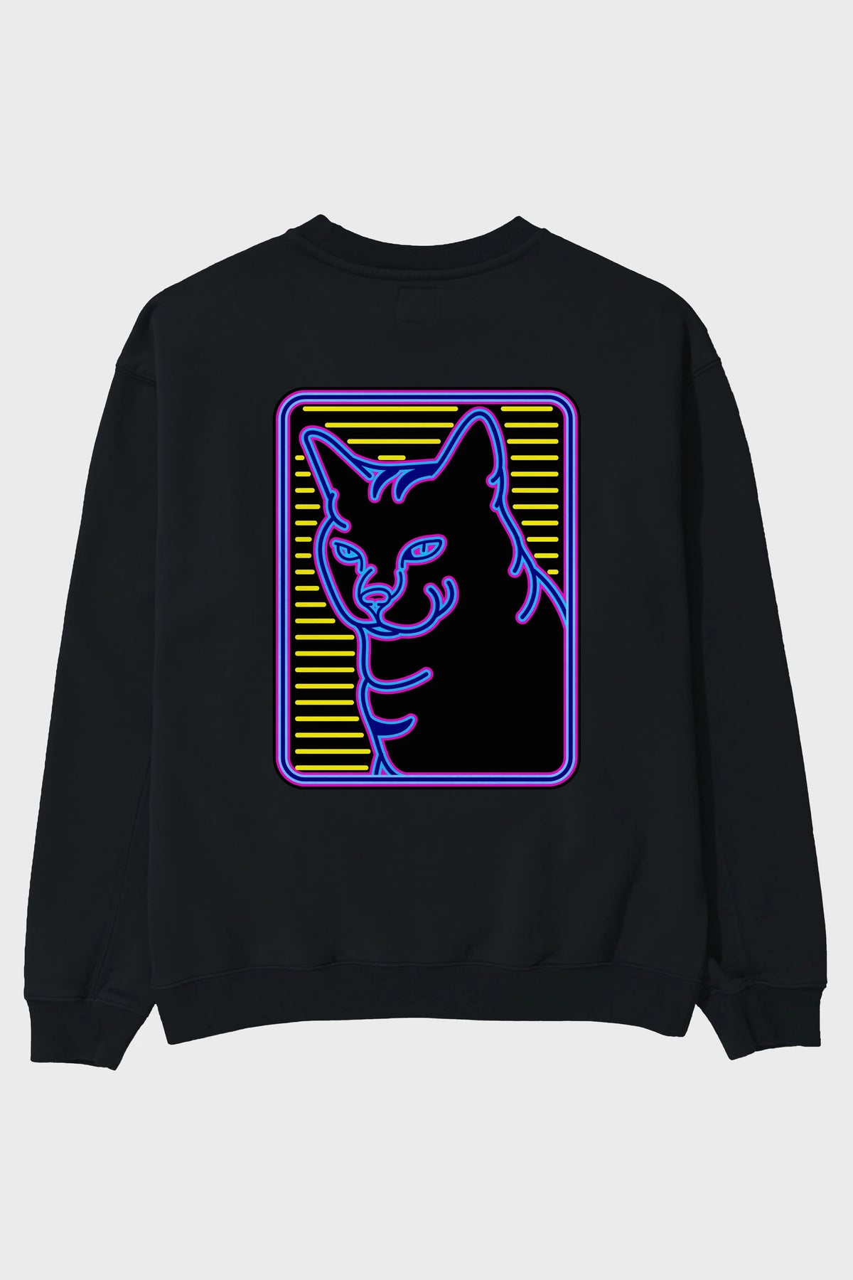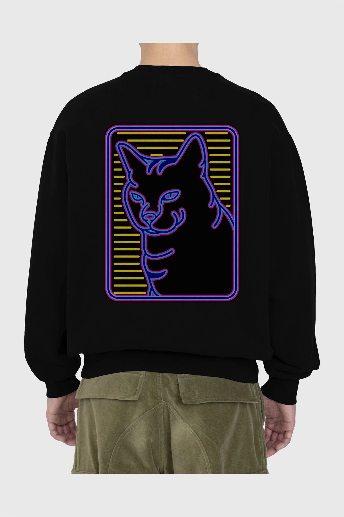 Neon Cat Arka Baskılı Oversize Sweatshirt Erkek Kadın Unisex