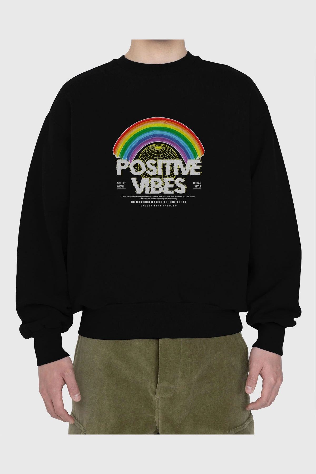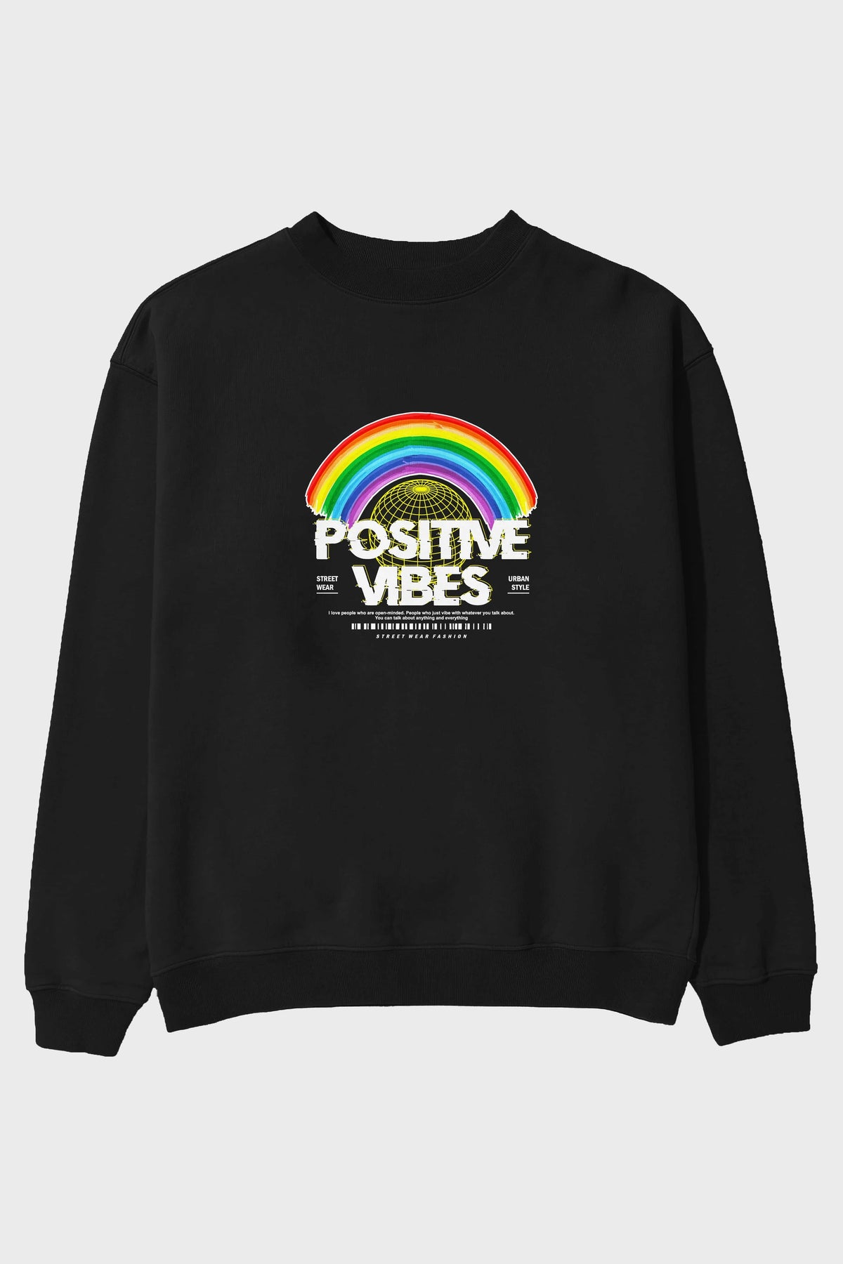 Positive Vibes Ön Baskılı Oversize Sweatshirt Erkek Kadın Unisex
