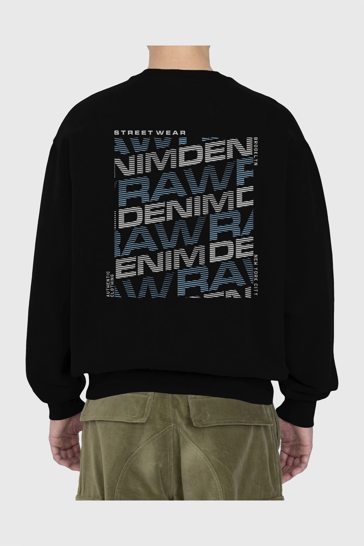 Raw Denim Arka Baskılı Oversize Sweatshirt Erkek Kadın Unisex