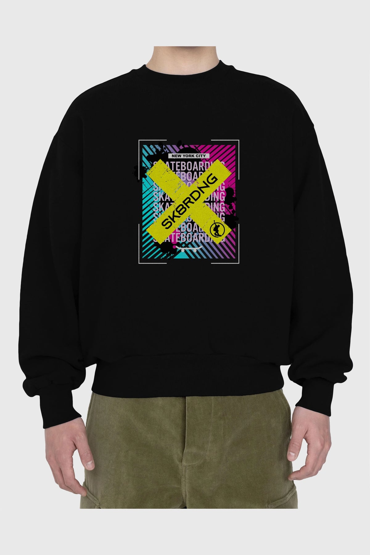 Skatebording Ön Baskılı Oversize Sweatshirt Erkek Kadın Unisex