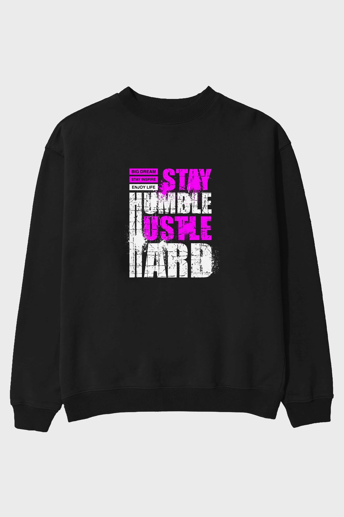 Stay Hustle Ön Baskılı Oversize Sweatshirt Erkek Kadın Unisex