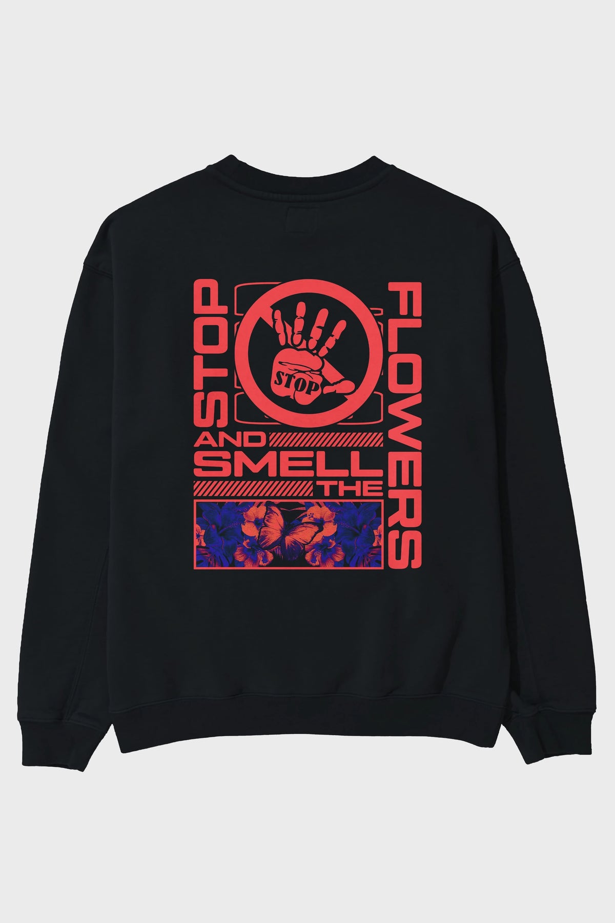 Stop and smell the flowers Arka Baskılı Oversize Sweatshirt Erkek Kadın Unisex