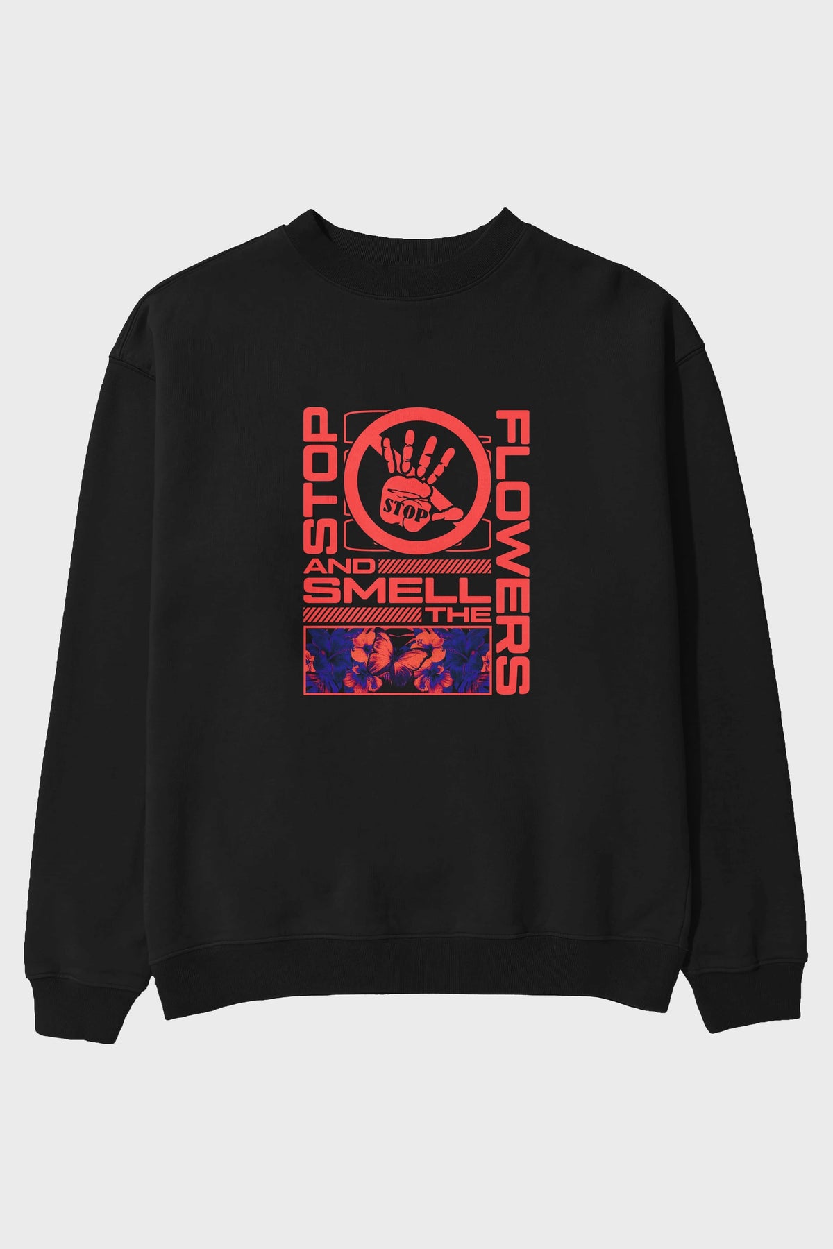 Stop and smell the flowers Ön Baskılı Oversize Sweatshirt Erkek Kadın Unisex