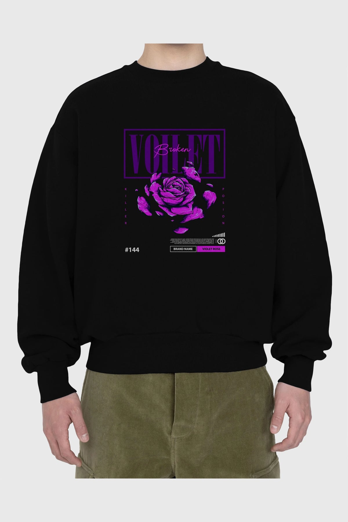 Voilet Broken Ön Baskılı Oversize Sweatshirt Erkek Kadın Unisex