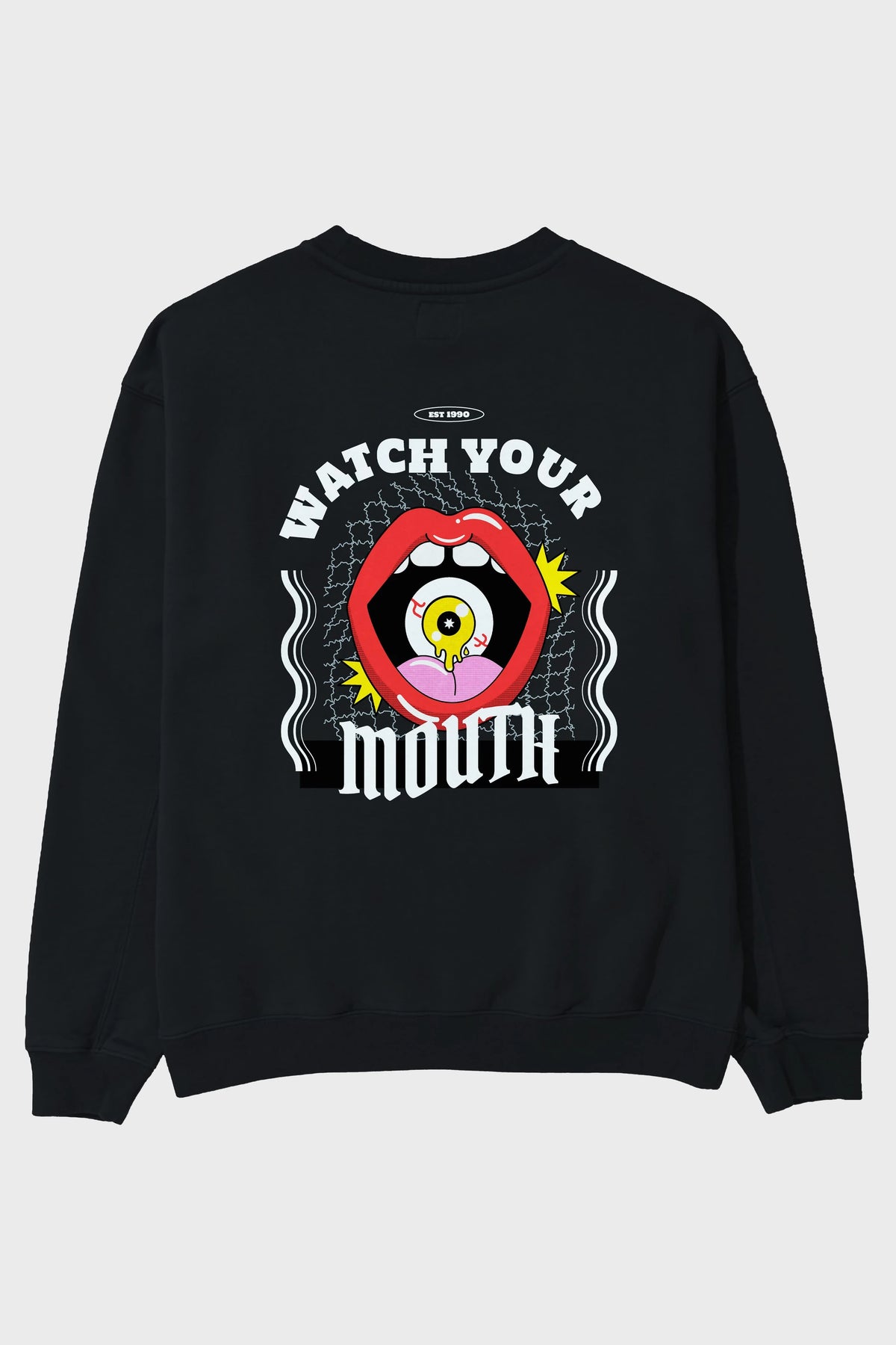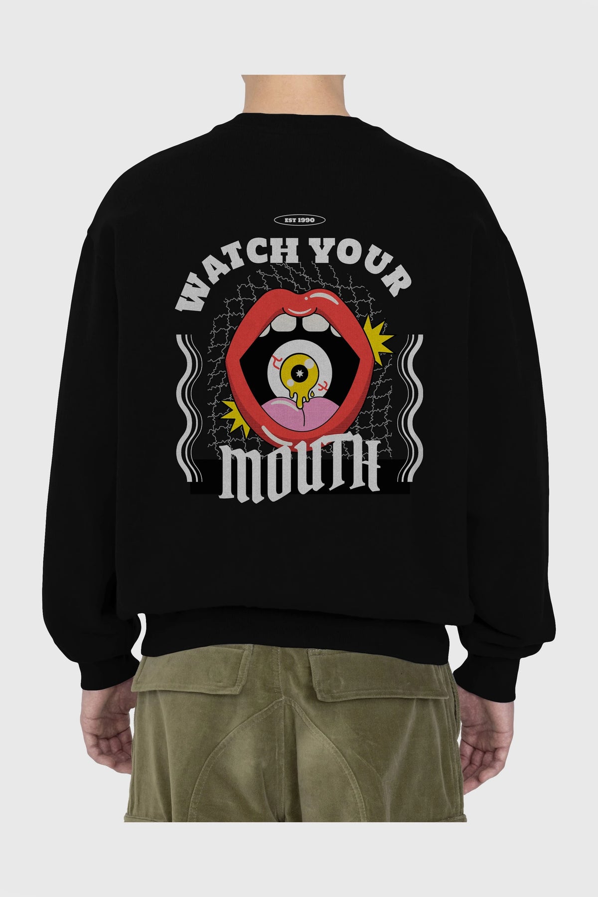 Watch Your Mouth Arka Baskılı Oversize Sweatshirt Erkek Kadın Unisex