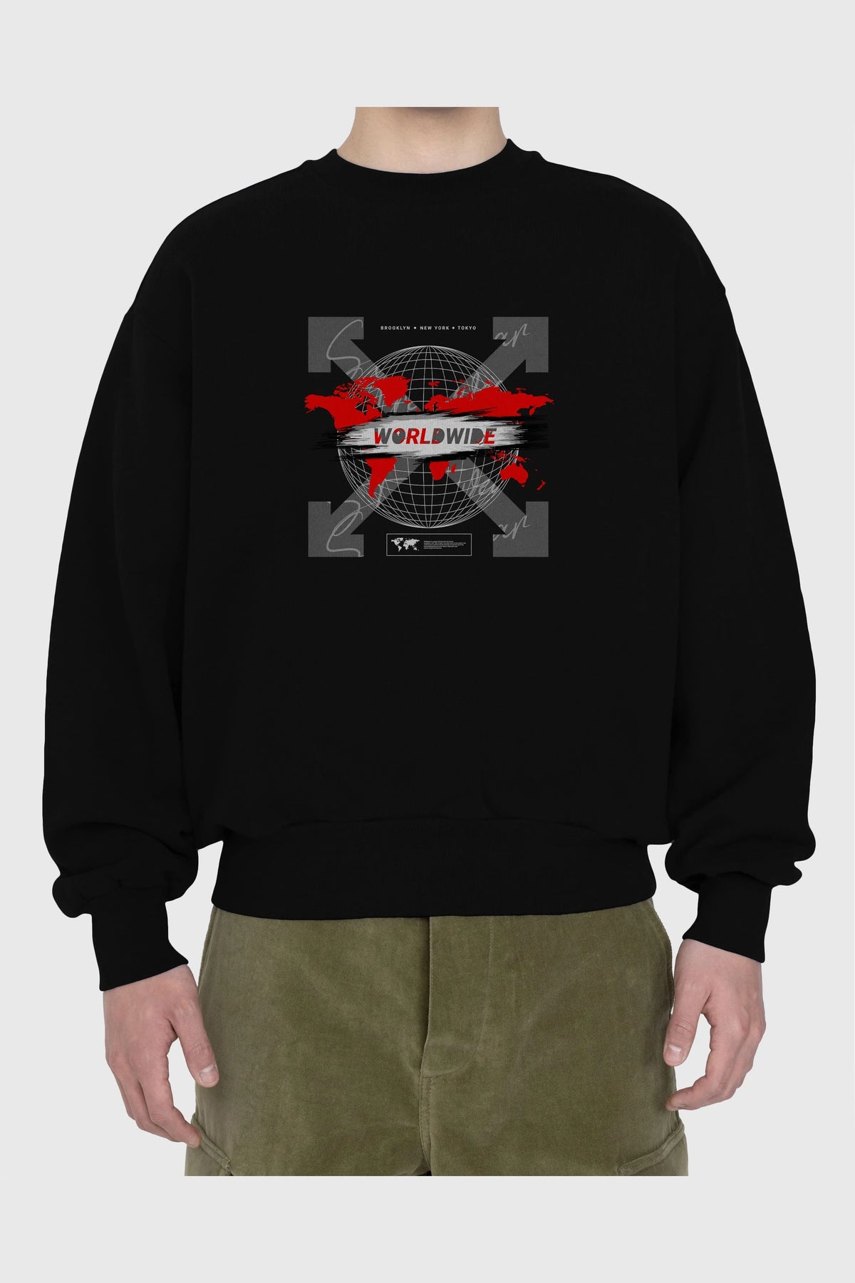 Worldwide Style Ön Baskılı Oversize Sweatshirt Erkek Kadın Unisex