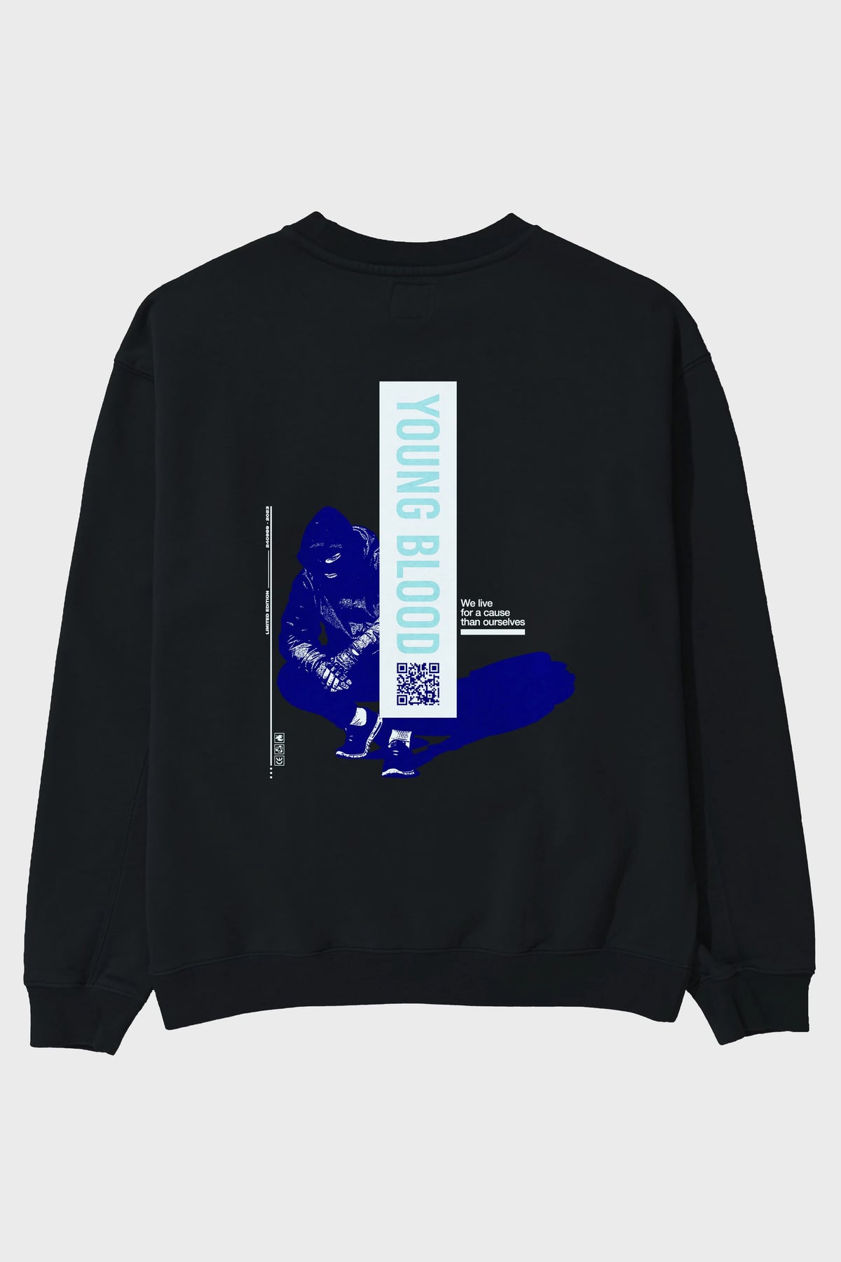 Young Blood Arka Baskılı Oversize Sweatshirt Erkek Kadın Unisex