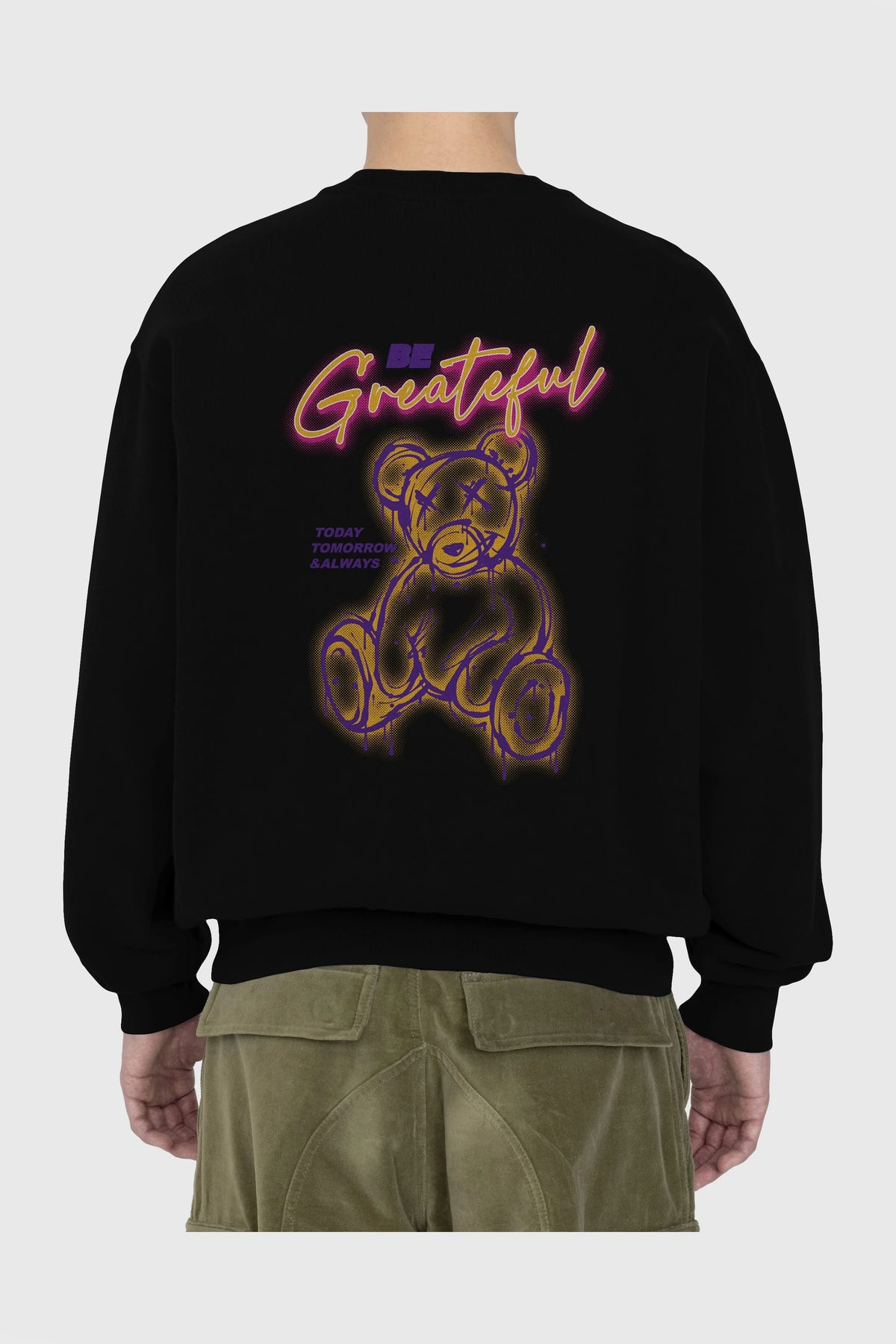 Be Greateful Bear Arka Baskılı Oversize Sweatshirt Erkek Kadın Unisex