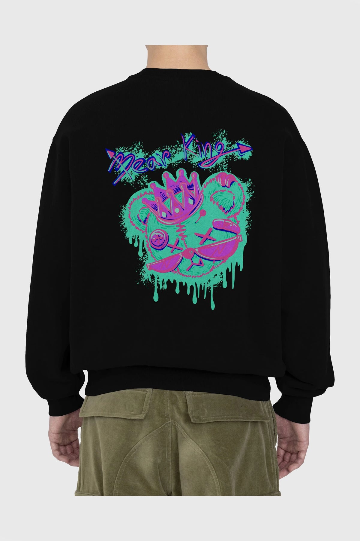 Bear King Arka Baskılı Oversize Sweatshirt Erkek Kadın Unisex