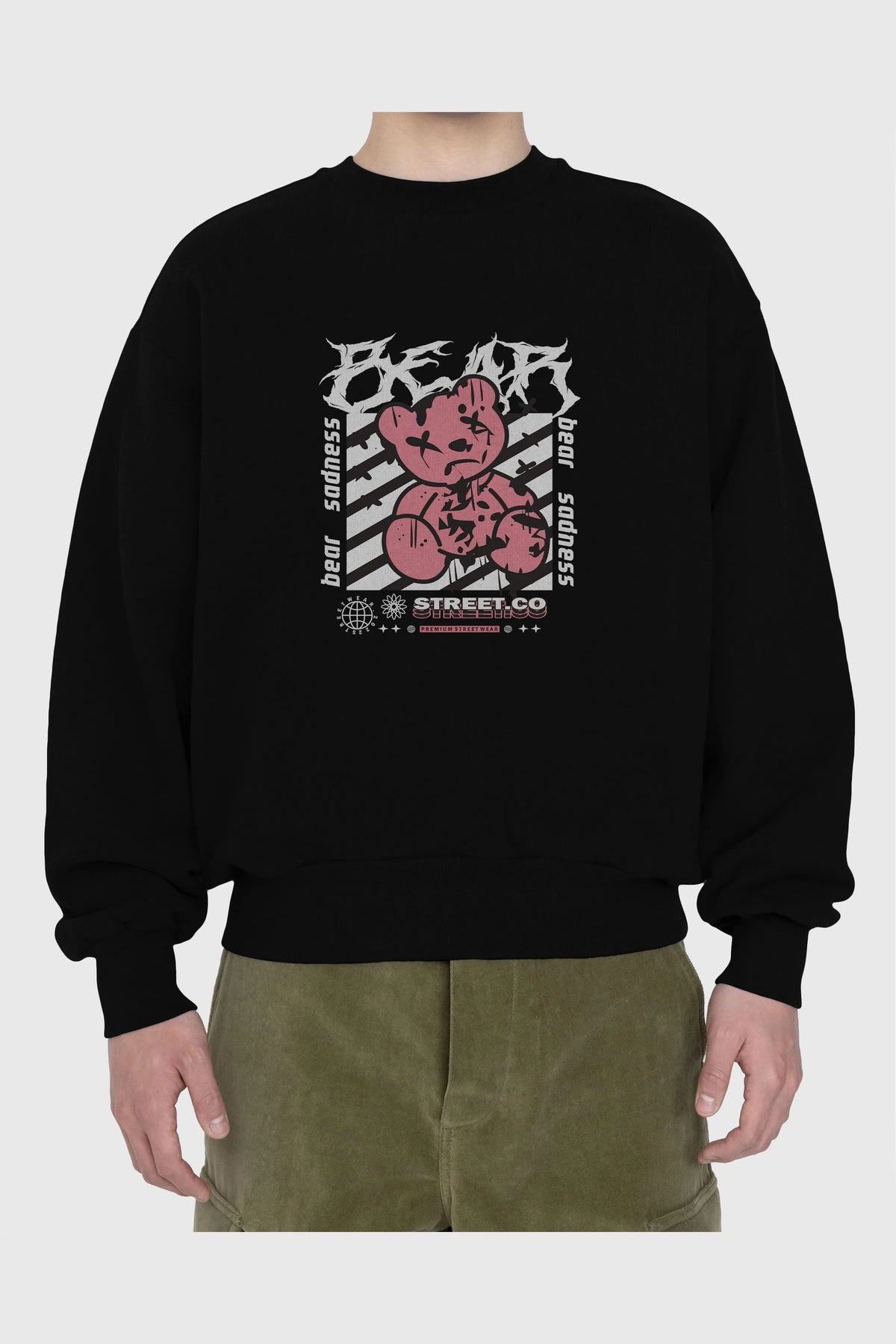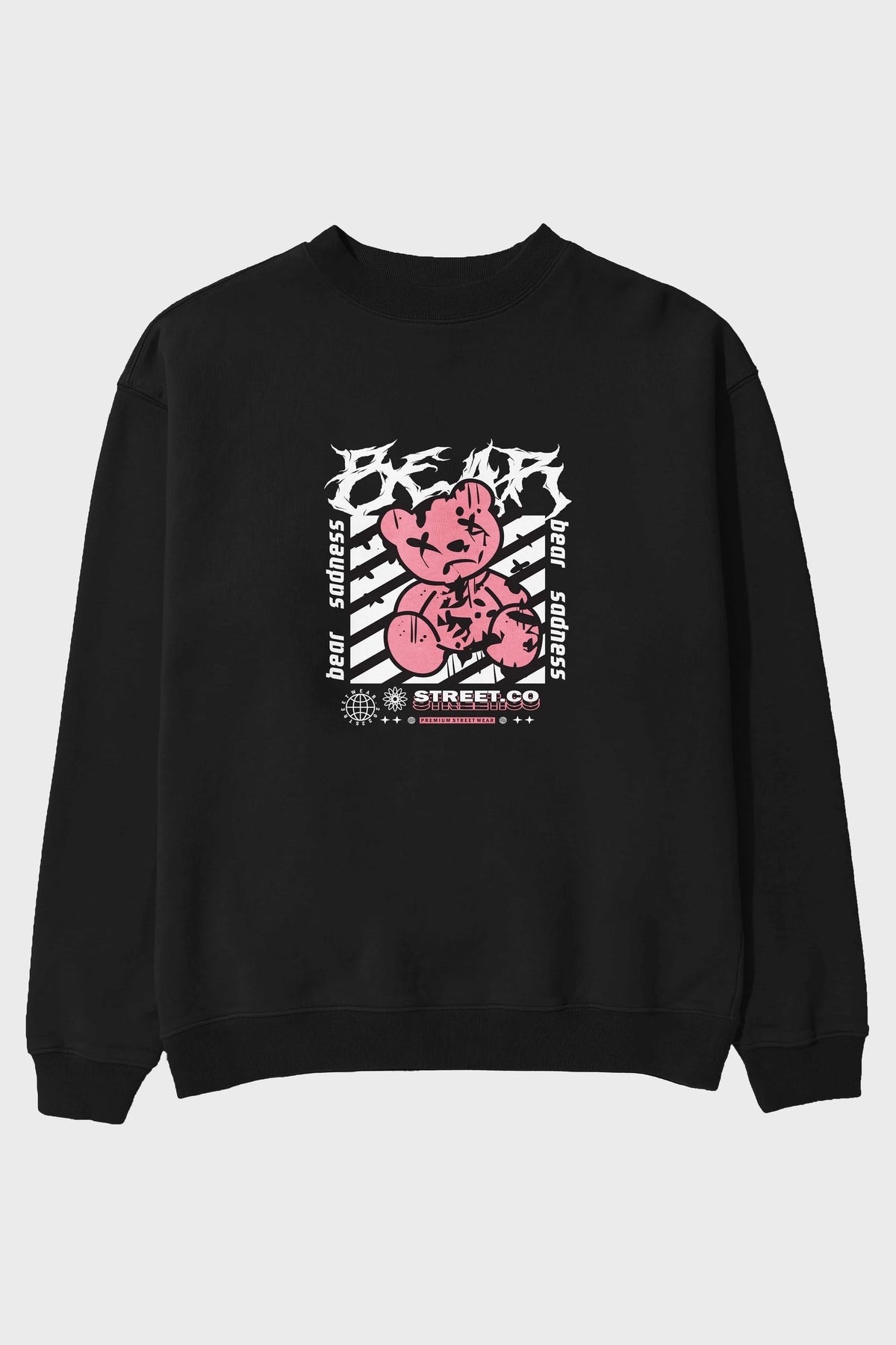 Bear Sadness Ön Baskılı Oversize Sweatshirt Erkek Kadın Unisex