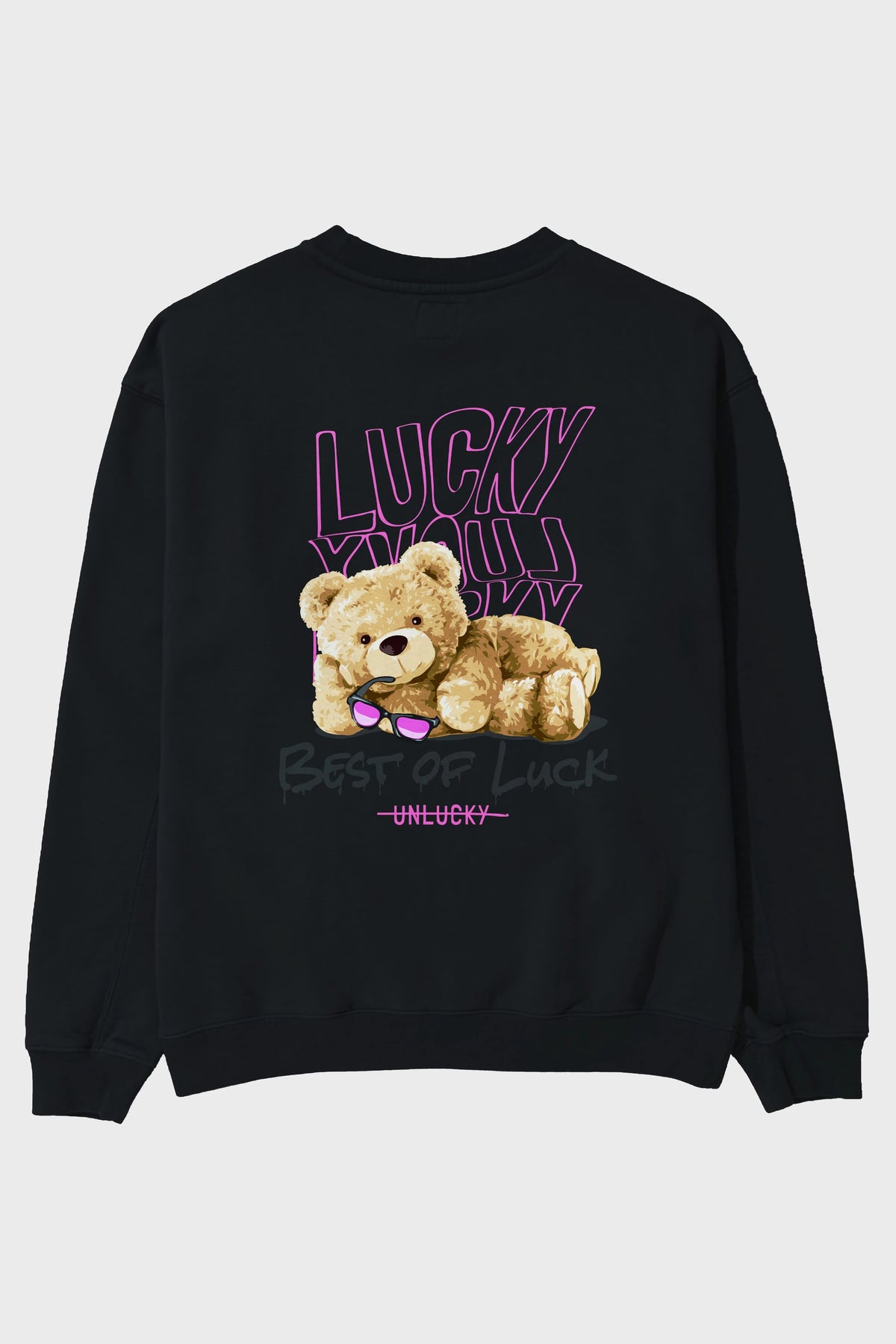 Best of Lucky Bear Arka Baskılı Oversize Sweatshirt Erkek Kadın Unisex